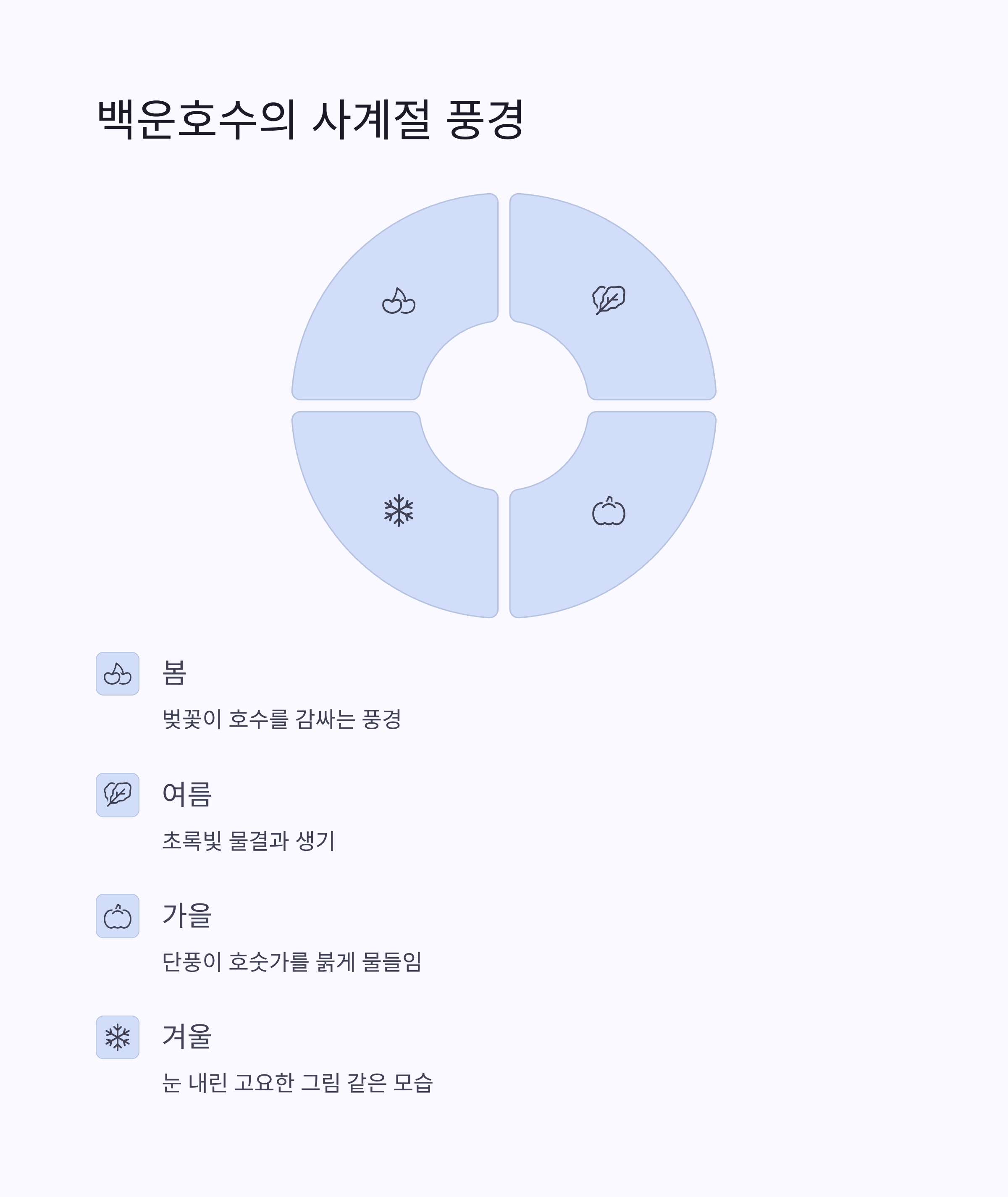 백운호수는 계절마다 전혀 다른 분위기를 자랑해요.