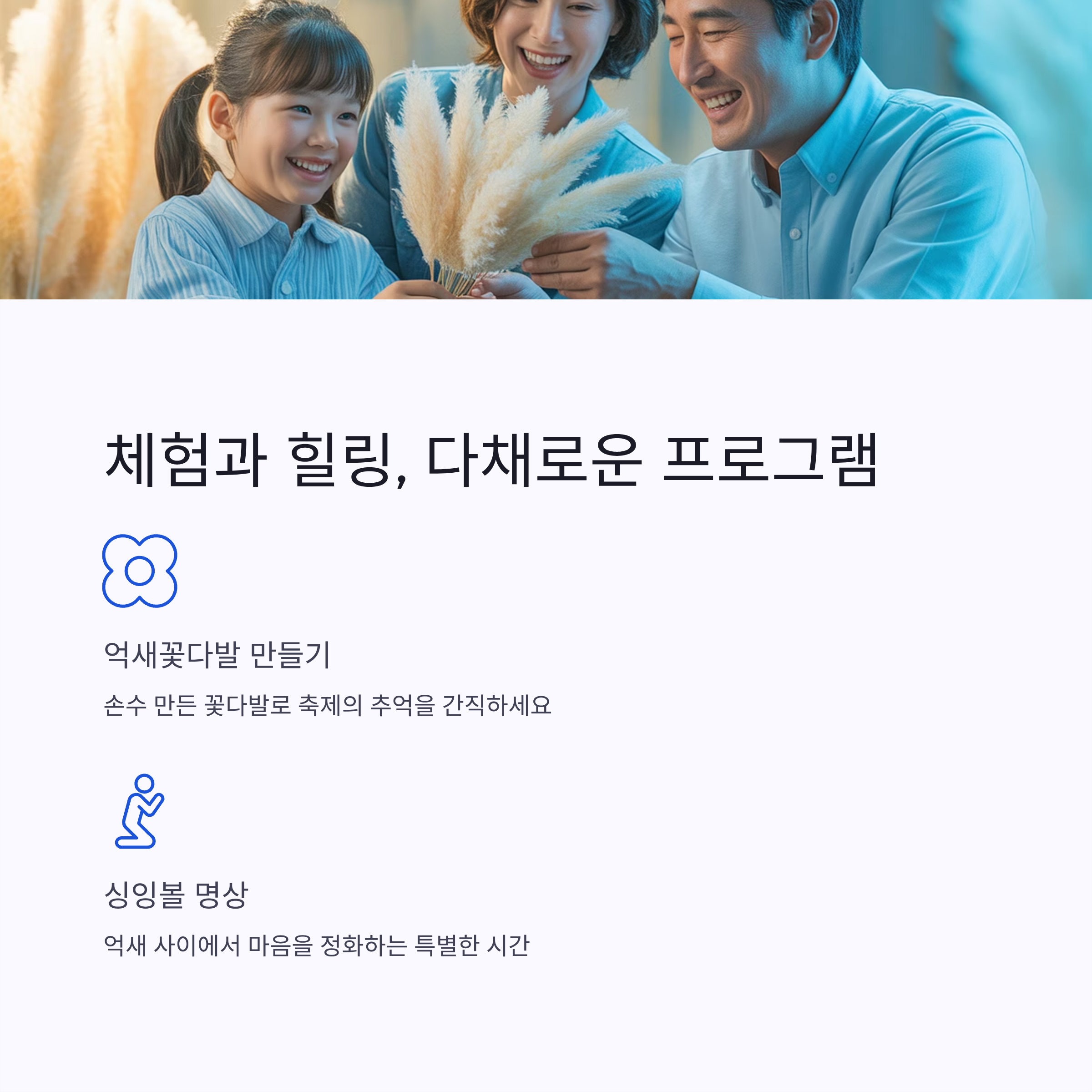 억새꽃다발 만들기 같은 체험형 프로그램도 인기가 많습니다.