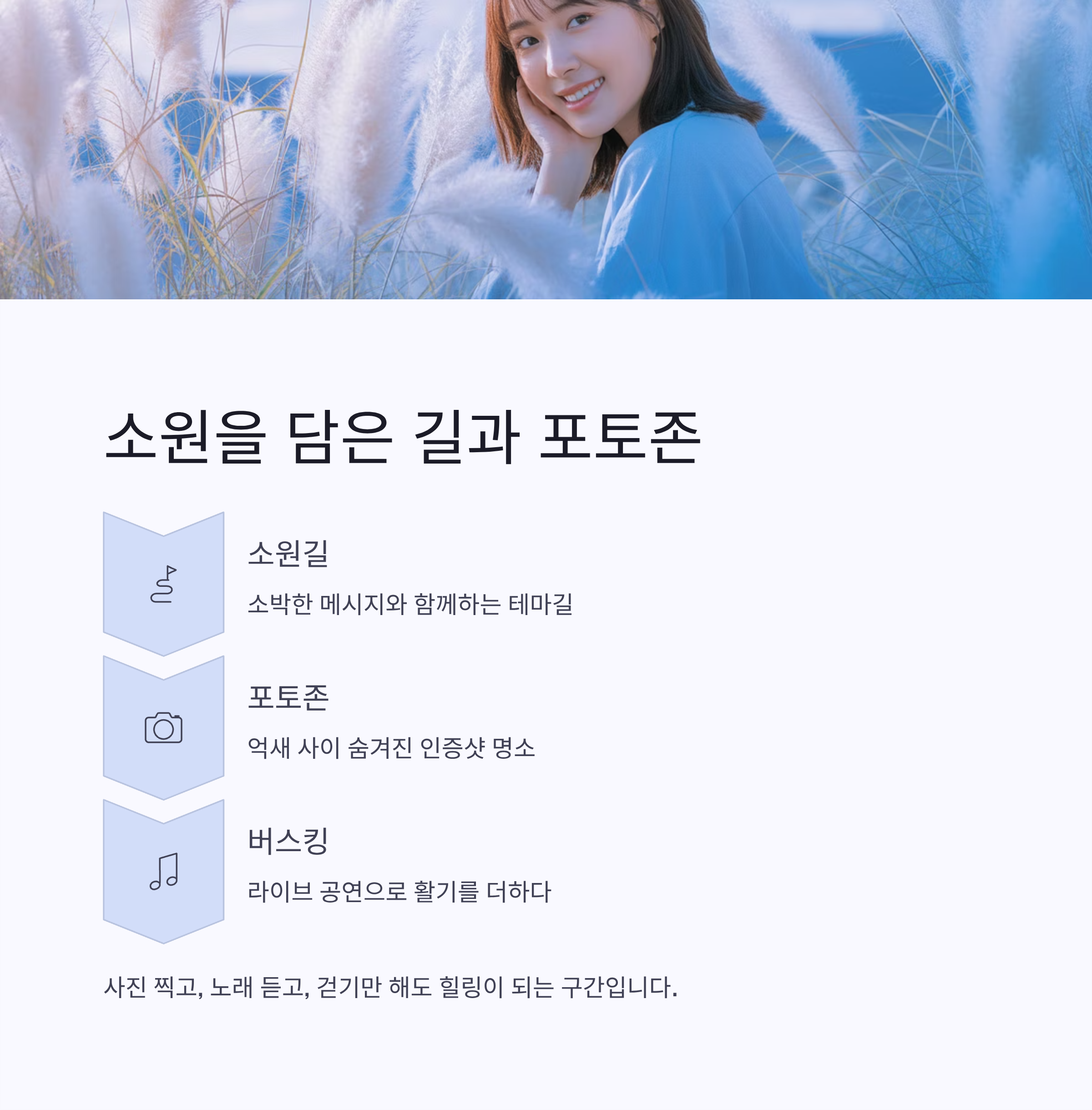 억새 사이에 숨겨진 포토존과 라이브 버스킹은