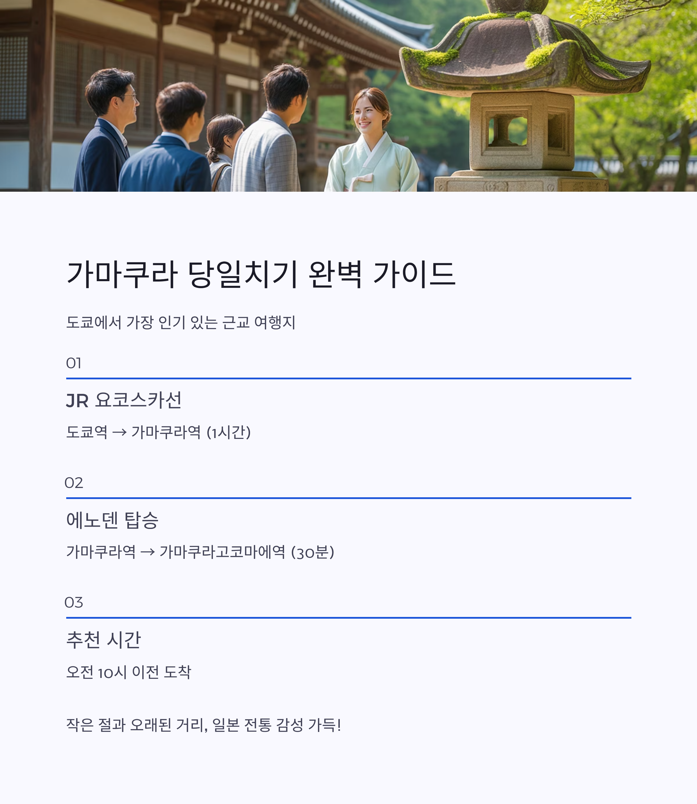 에노덴 가마쿠라역 → 가마쿠라고코마에역 (약 30분)
