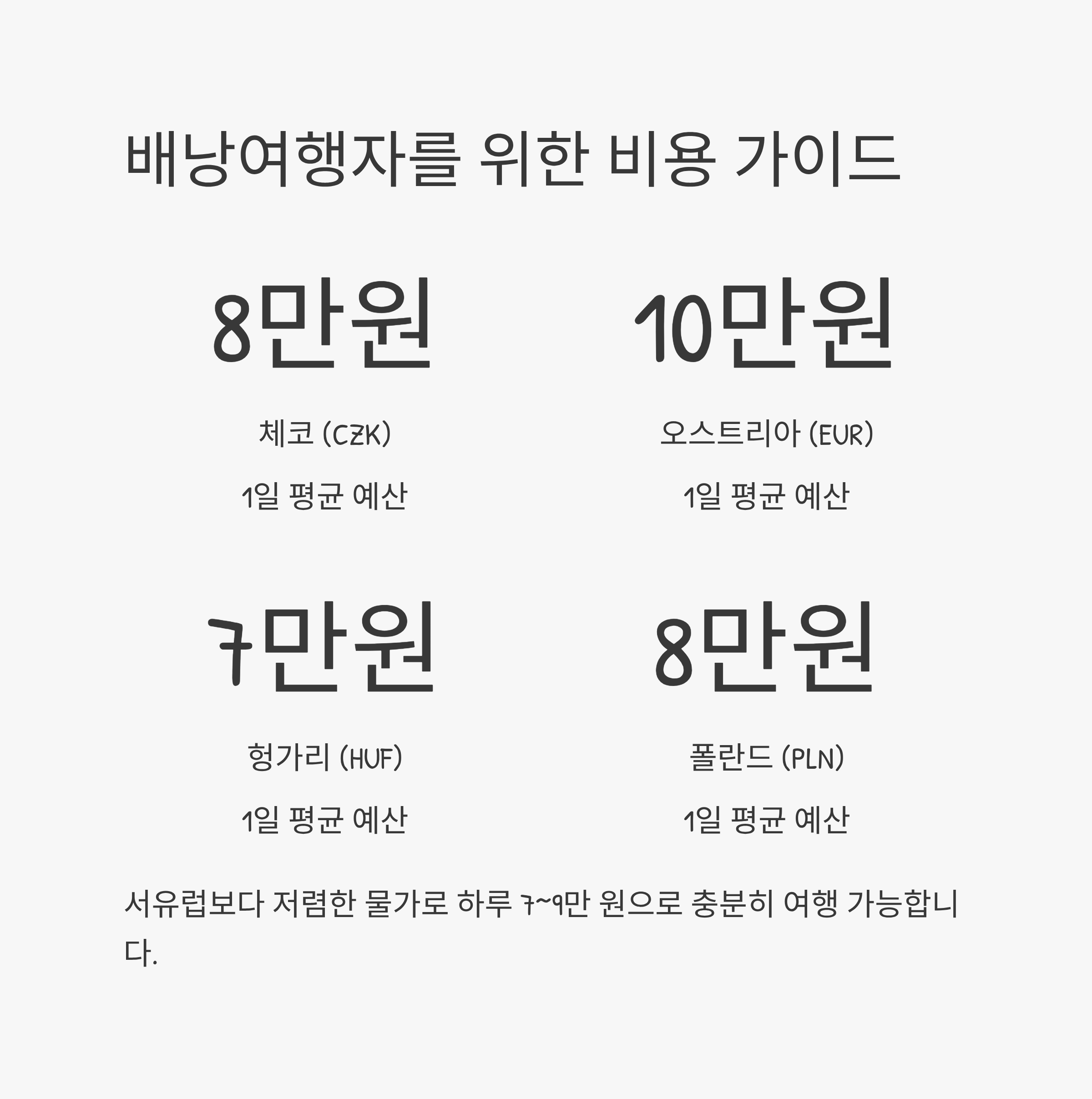 동유럽은 서유럽보다 물가가 저렴해 1일 평균 7~9만 원으로