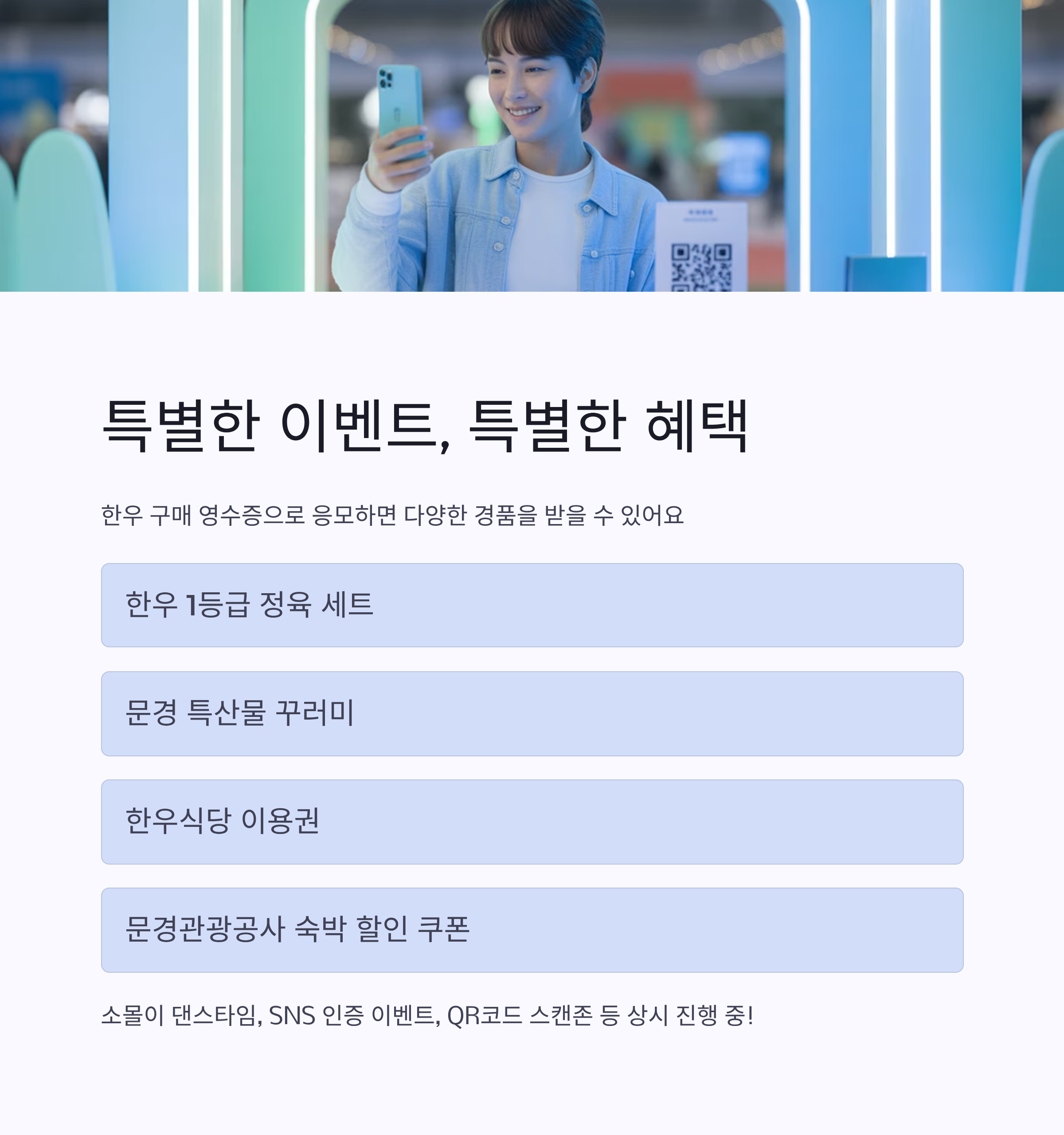 한우 구매 영수증으로 응모하면 다양한 경품을 받을 수 있으며,