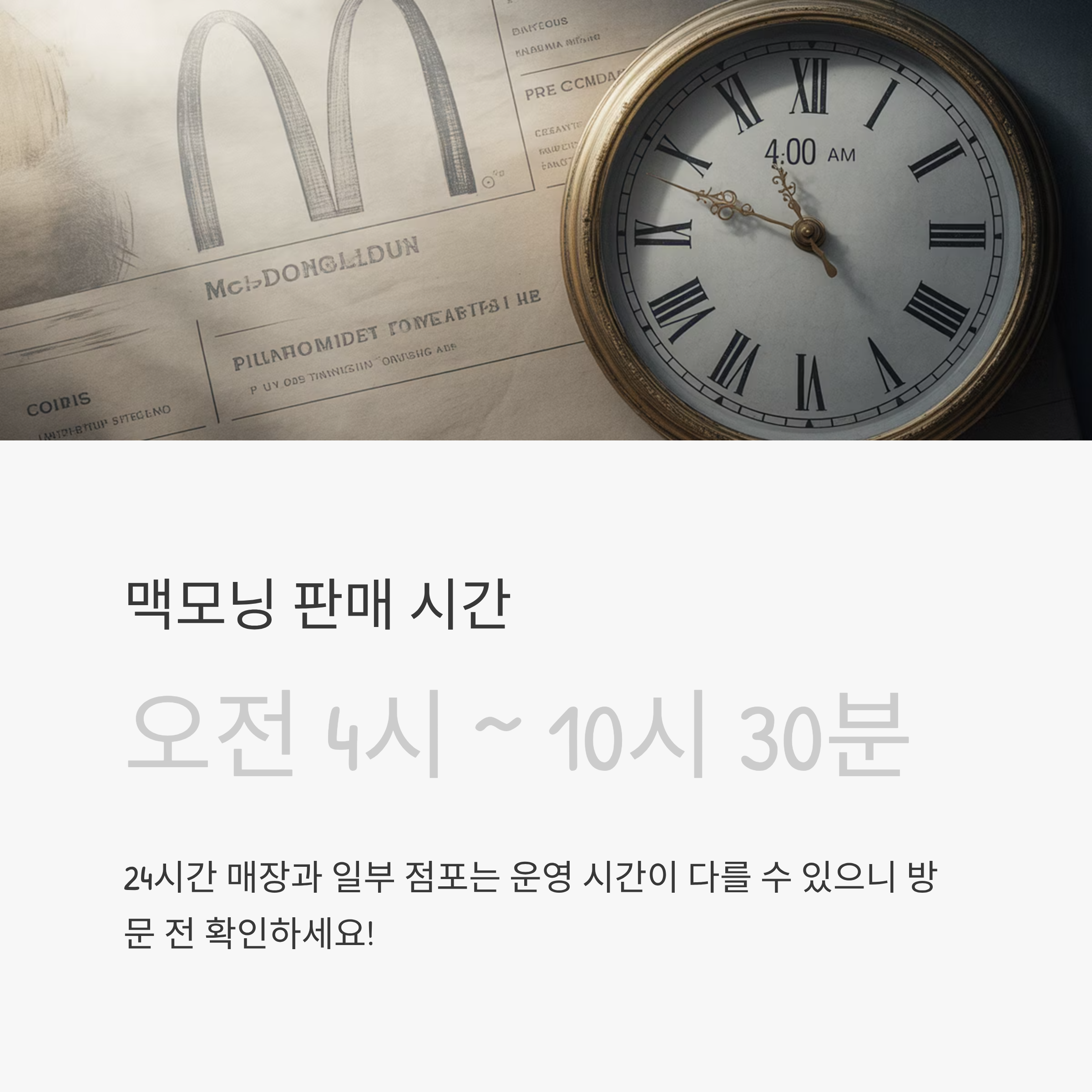 맥모닝은 오전 4시부터 오전 10시 30분까지 판매됩니다.