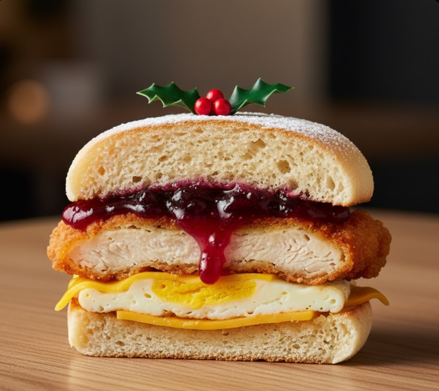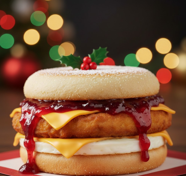 "와... 이거 진짜 크리스마스 아침 식사 맛인데? 달콤함이 과하지 않고 짭짤한 치킨 패티랑 너무 잘 어울려요. 전문가들도 극찬할 맛의 조화예요!"