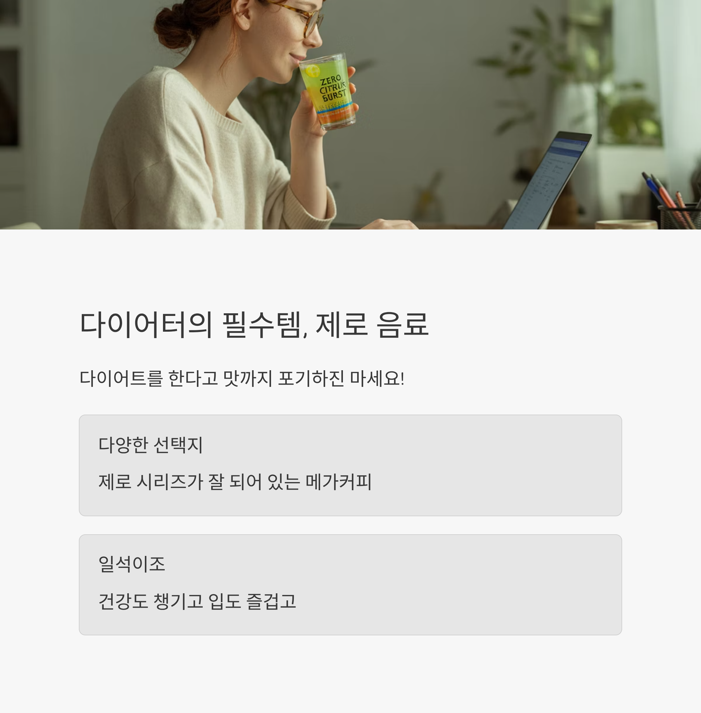 메가커피처럼 제로 시리즈가 잘 되어 있는 곳에서 알차게 즐기면