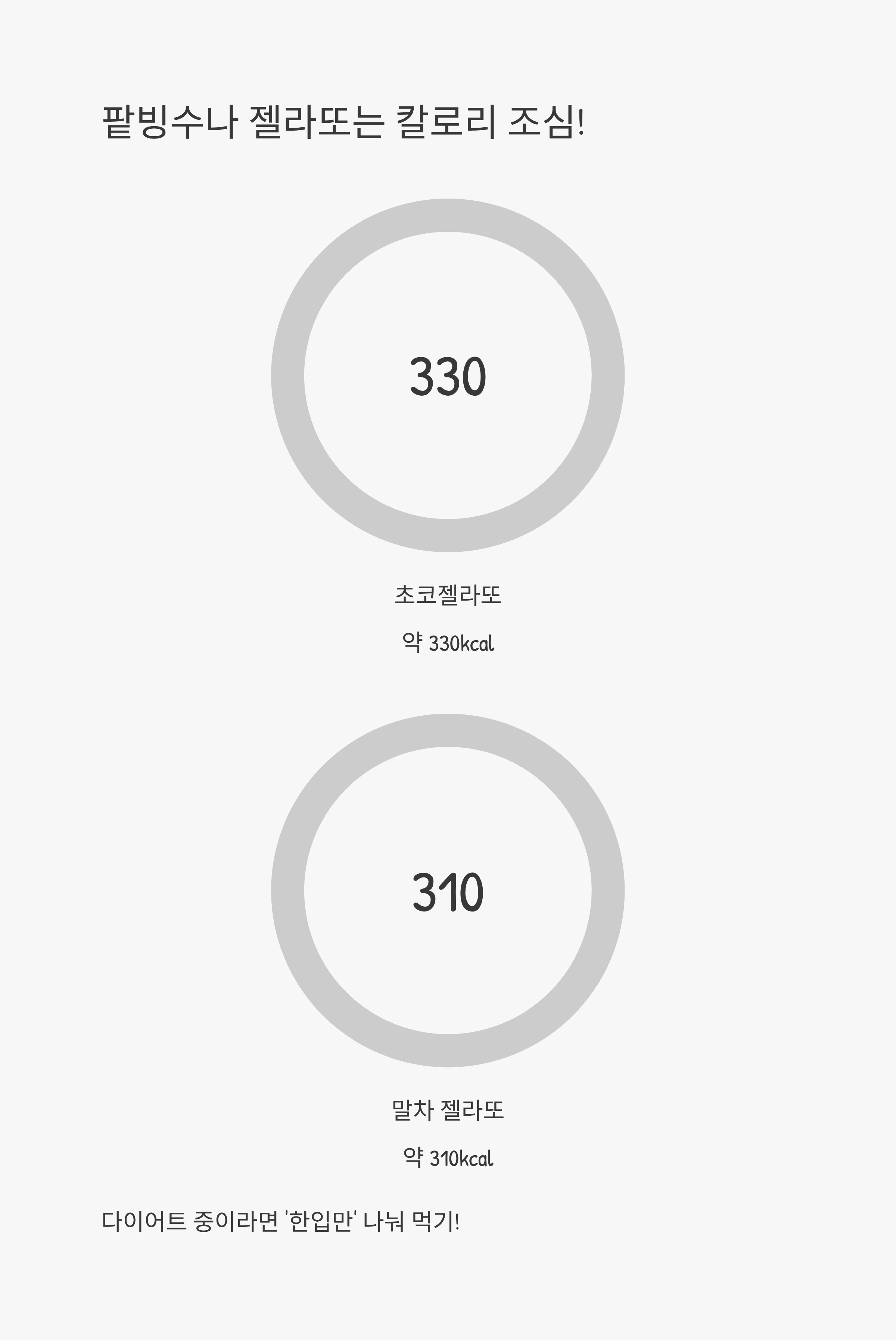 팥빙수, 젤라토, 파르페류는 평균 250~400kcal 이상이니까요.