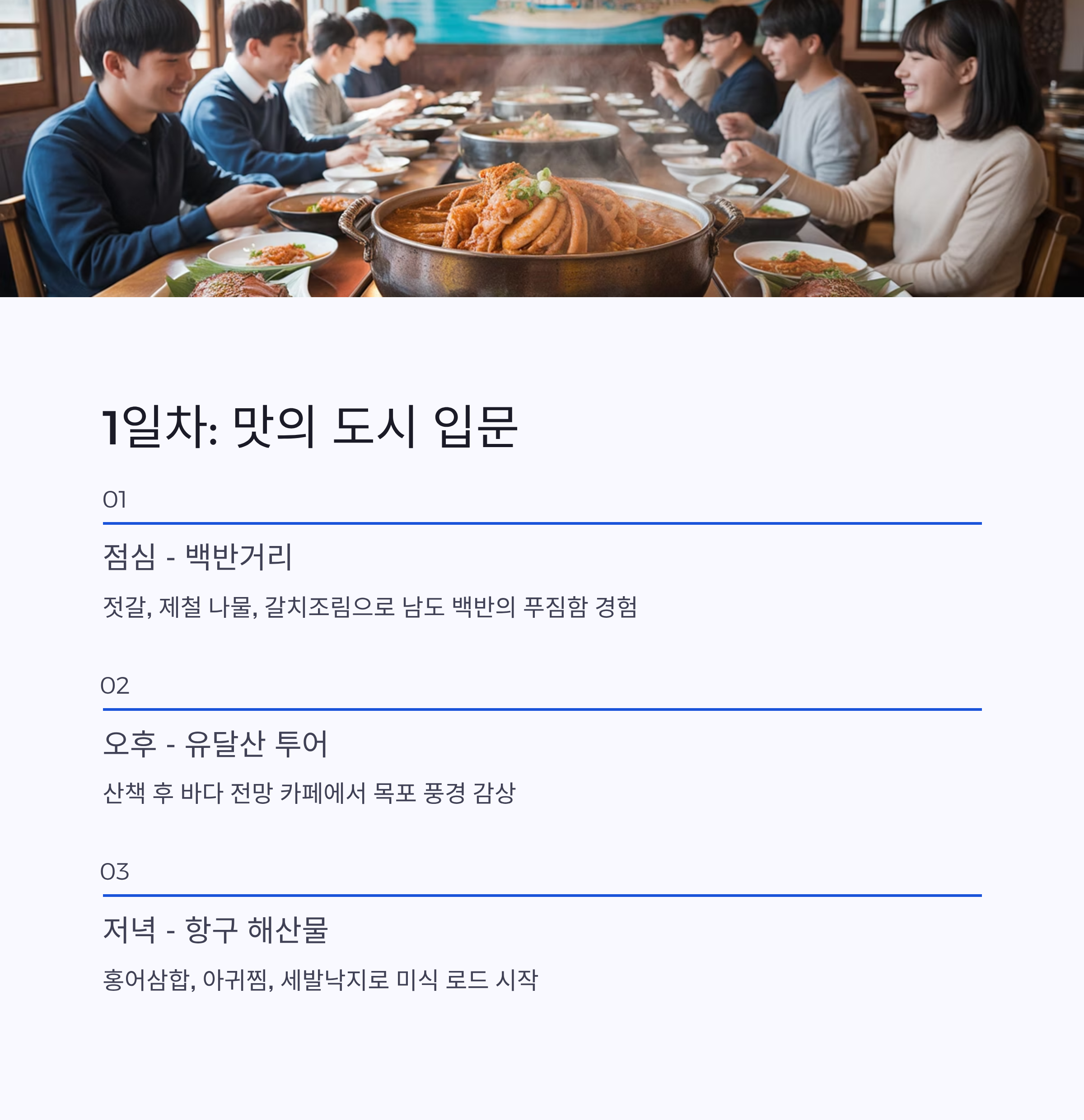 백반 한상부터 싱싱한 해산물까지, 짧은 일정 속에서 목포의 매력을 알차게 담아봤습니다.