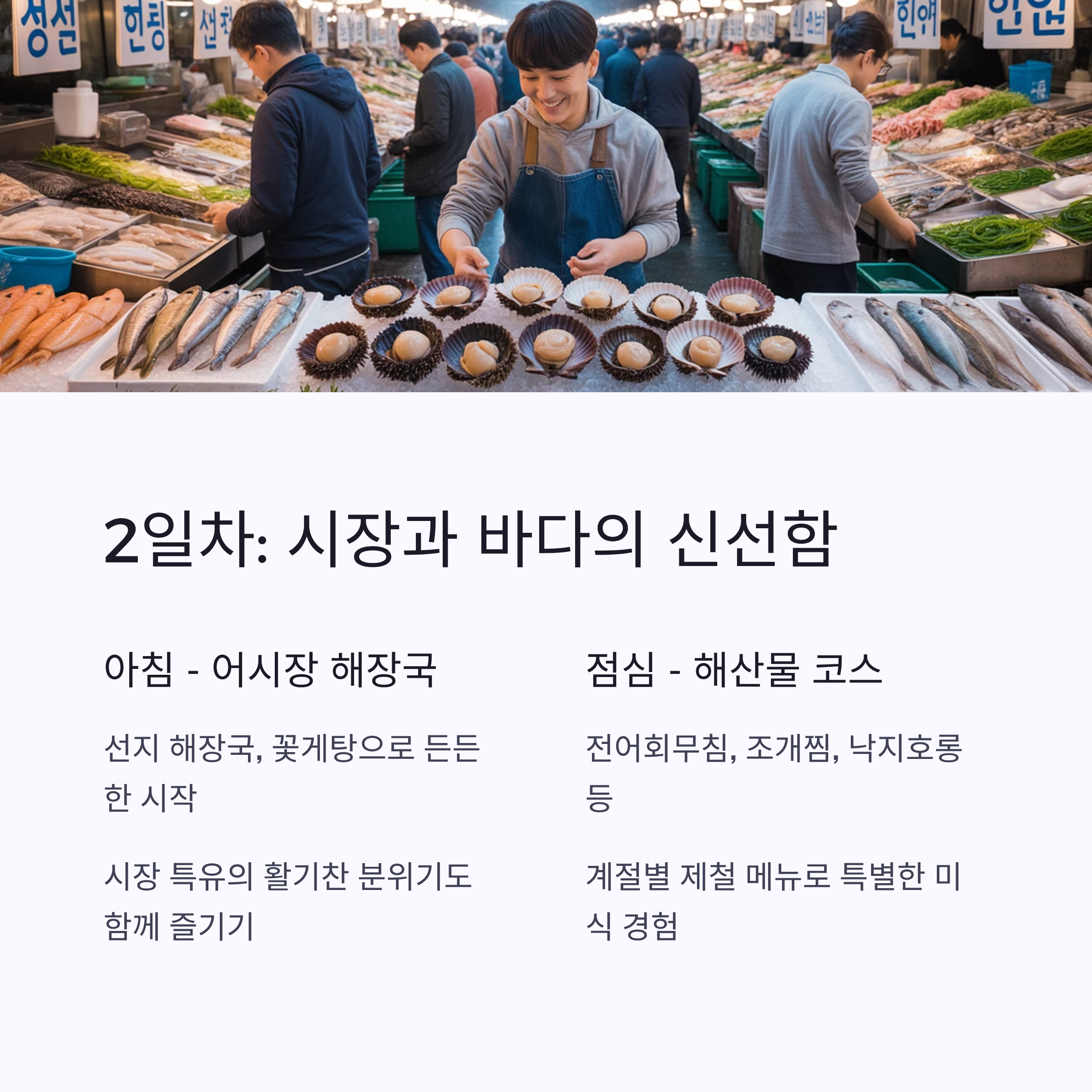 2일 차: 시장과 바다에서 즐기는 신선한 맛