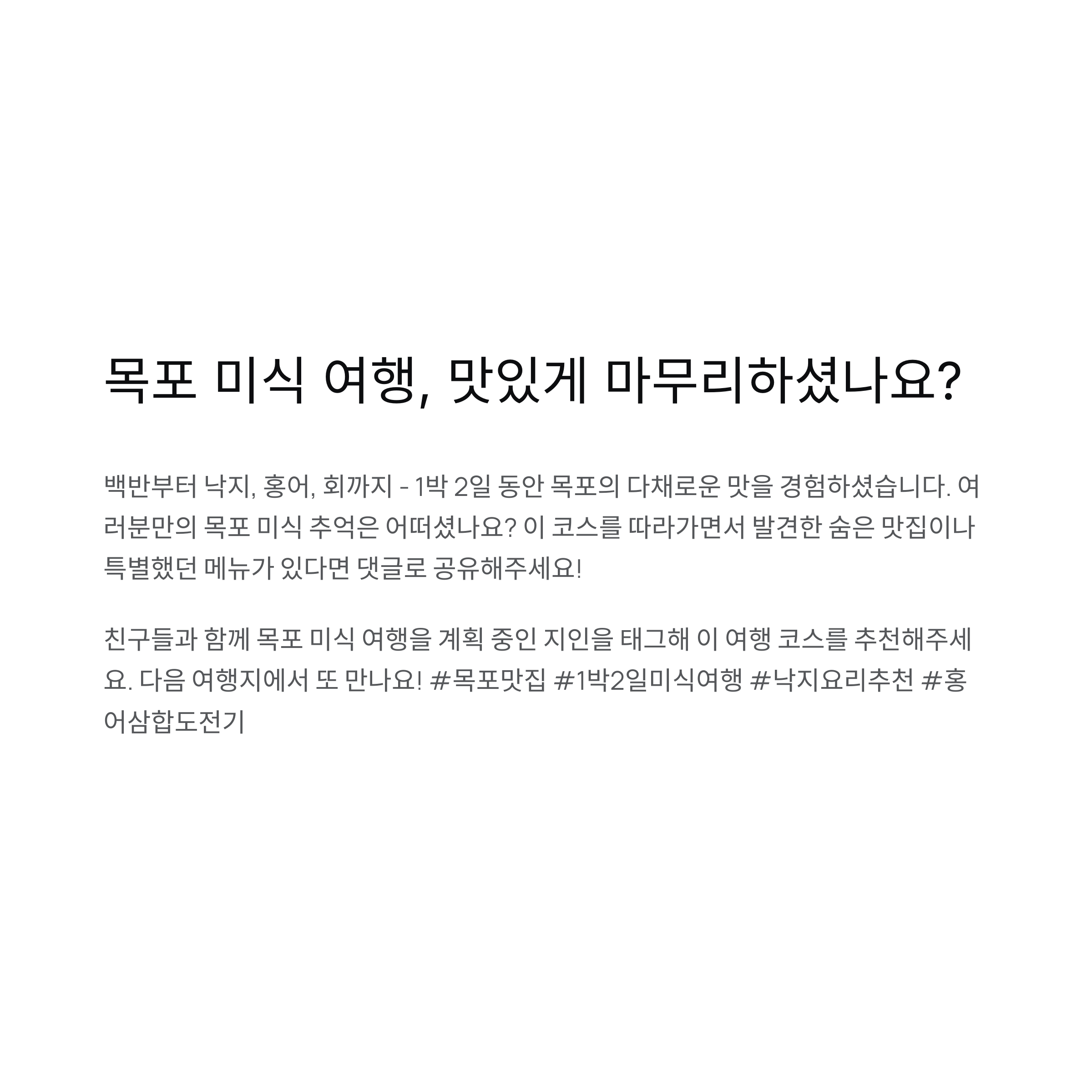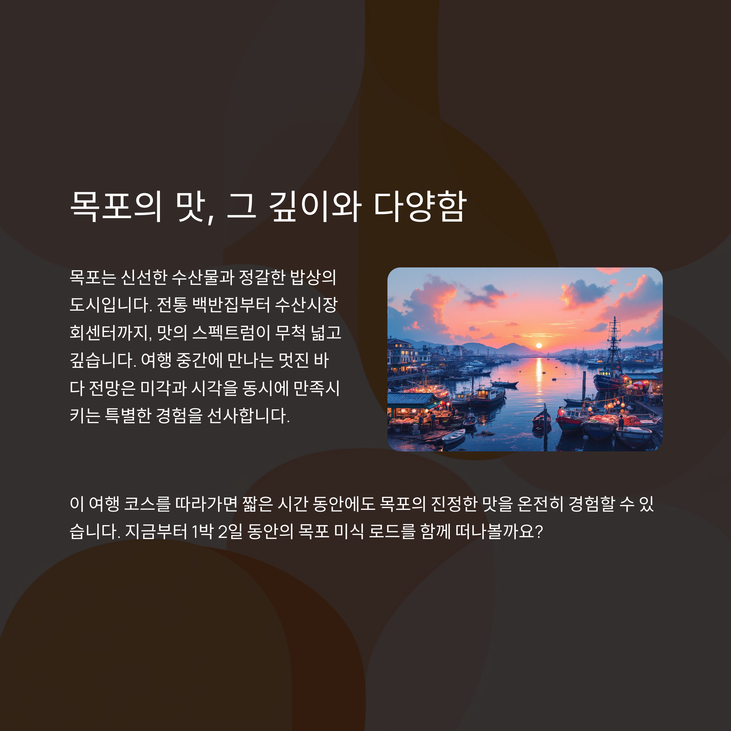 목포의 진짜 맛을 알차게 경험할 수 있습니다.