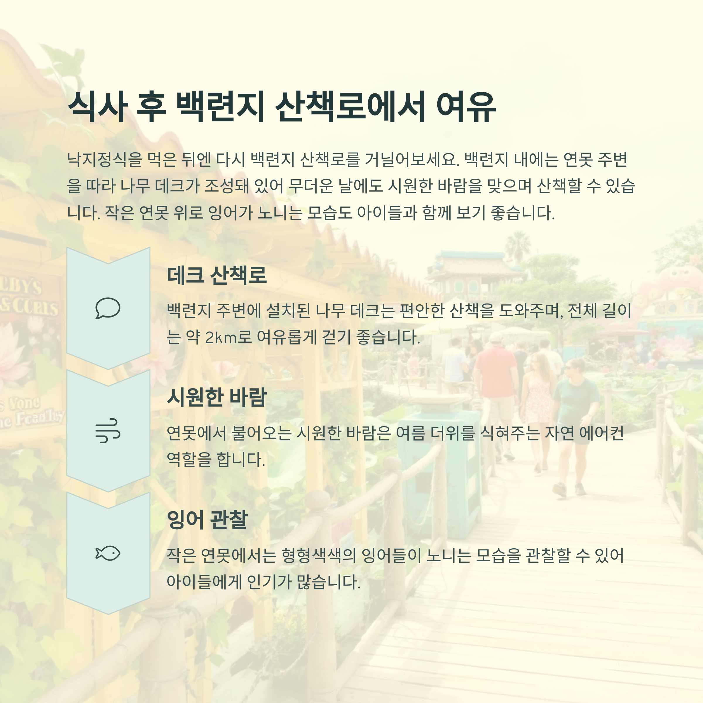 낙지정식을 먹은 뒤엔 다시 백련지 산책로를 거닐어보세요.