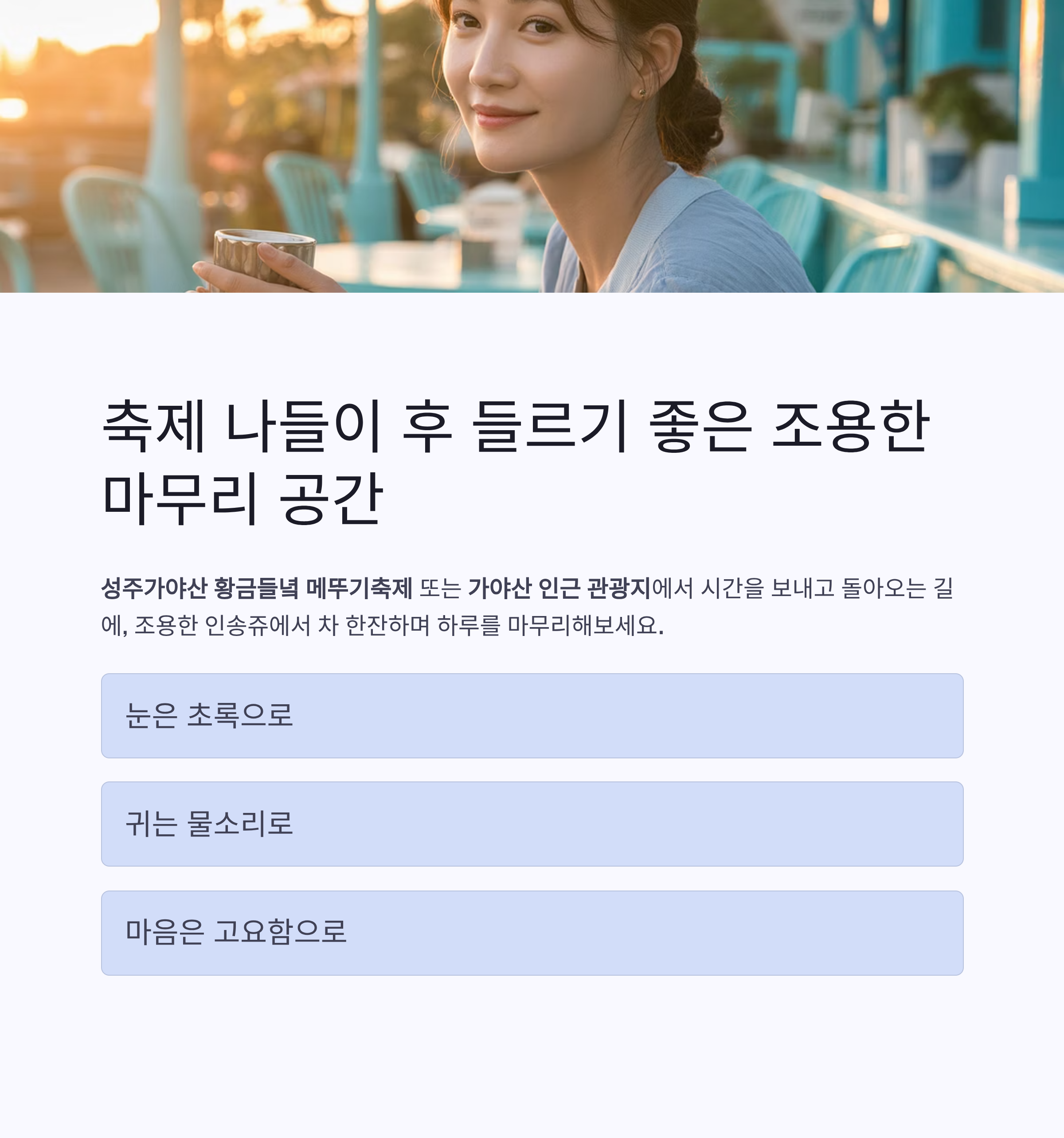축제 나들이 후 들르기 좋은 조용한 마무리 공간