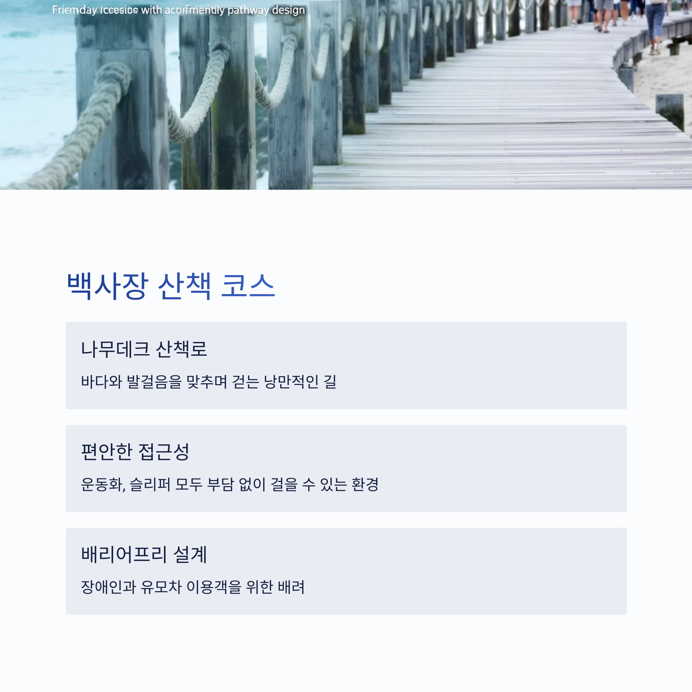 자연 속 힐링과 여유를 동시에 느낄 수 있는 최고의 해변 코스입니다.