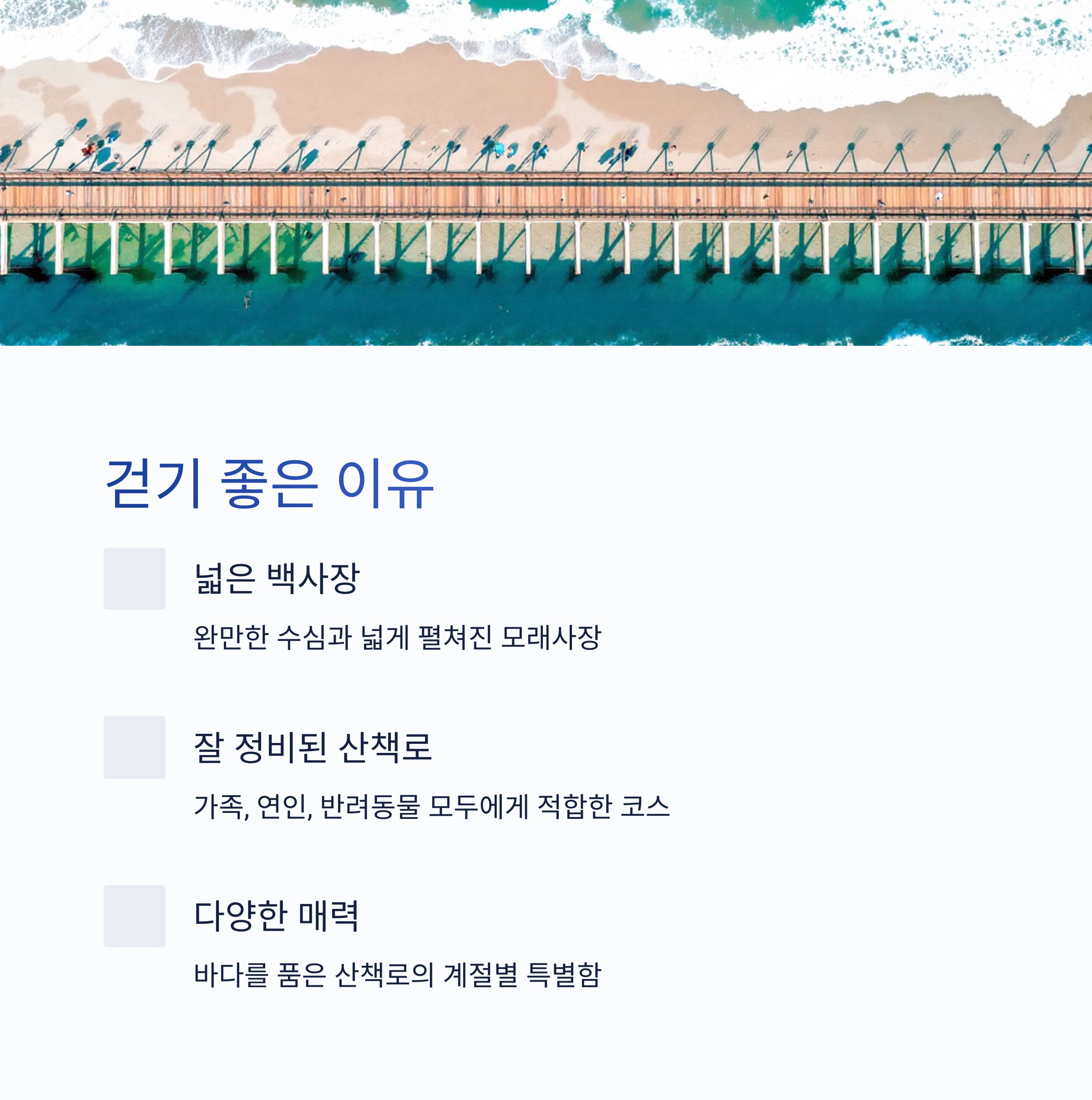 바다와 발걸음을 맞추며 걷는 낭만이 가득합니다.