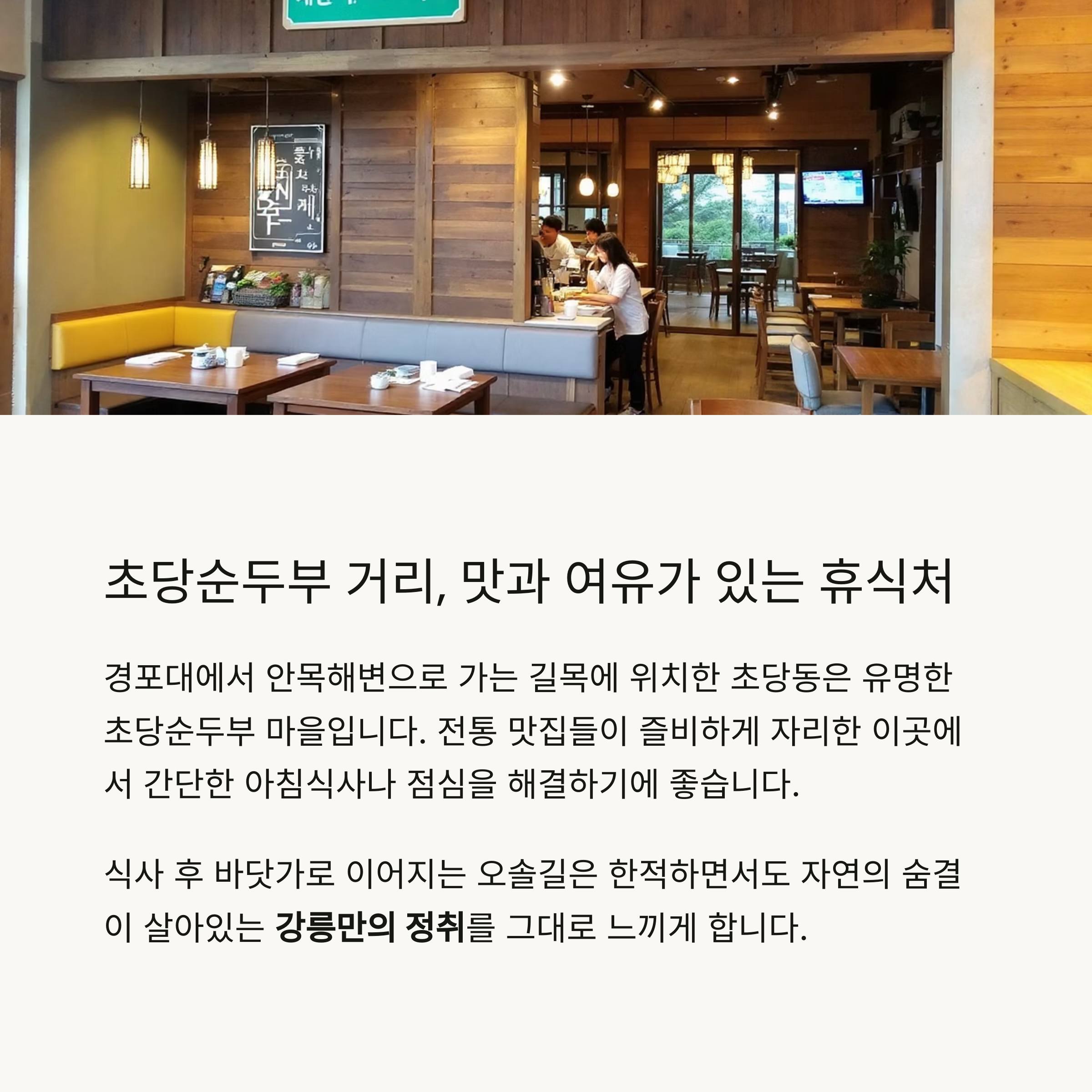 초당순두부 거리와 바닷길 사이의 고요한 쉼터