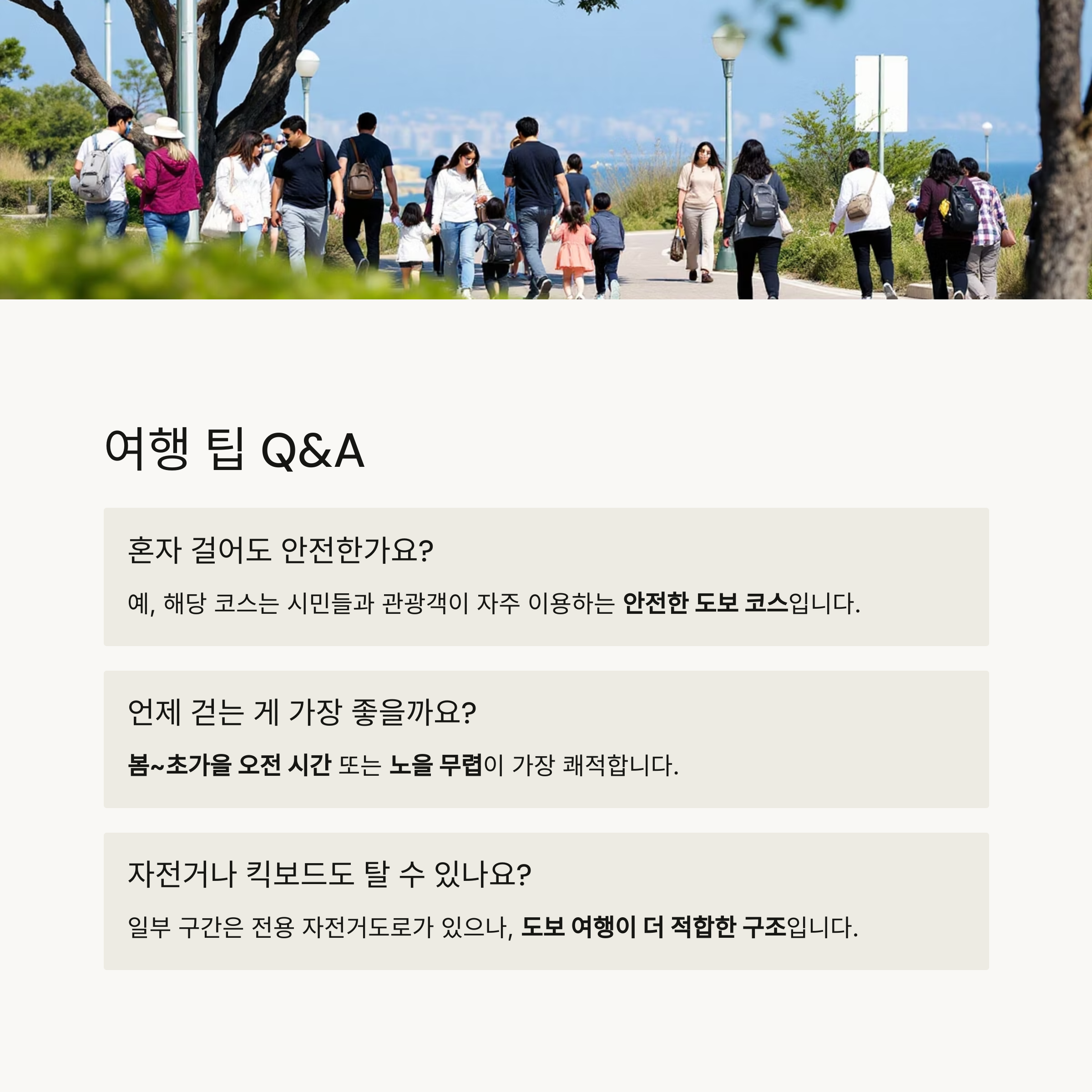 → 예, 해당 코스는 시민들과 관광객이 자주 이용하는 안전한 도보 코스입니다.
