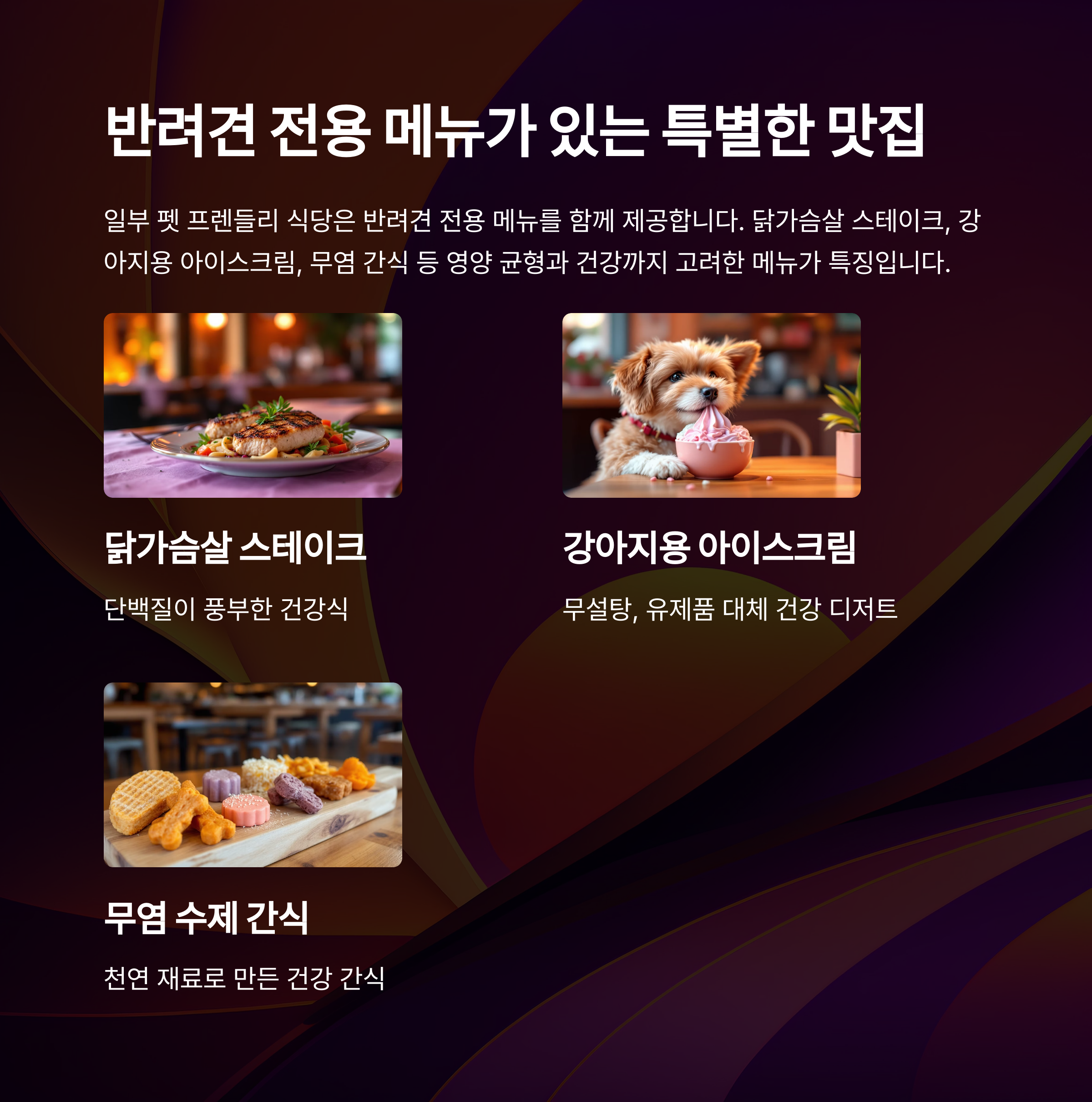 일부 펫 프렌들리 식당은 반려견 전용 메뉴를 함께 제공합니다.