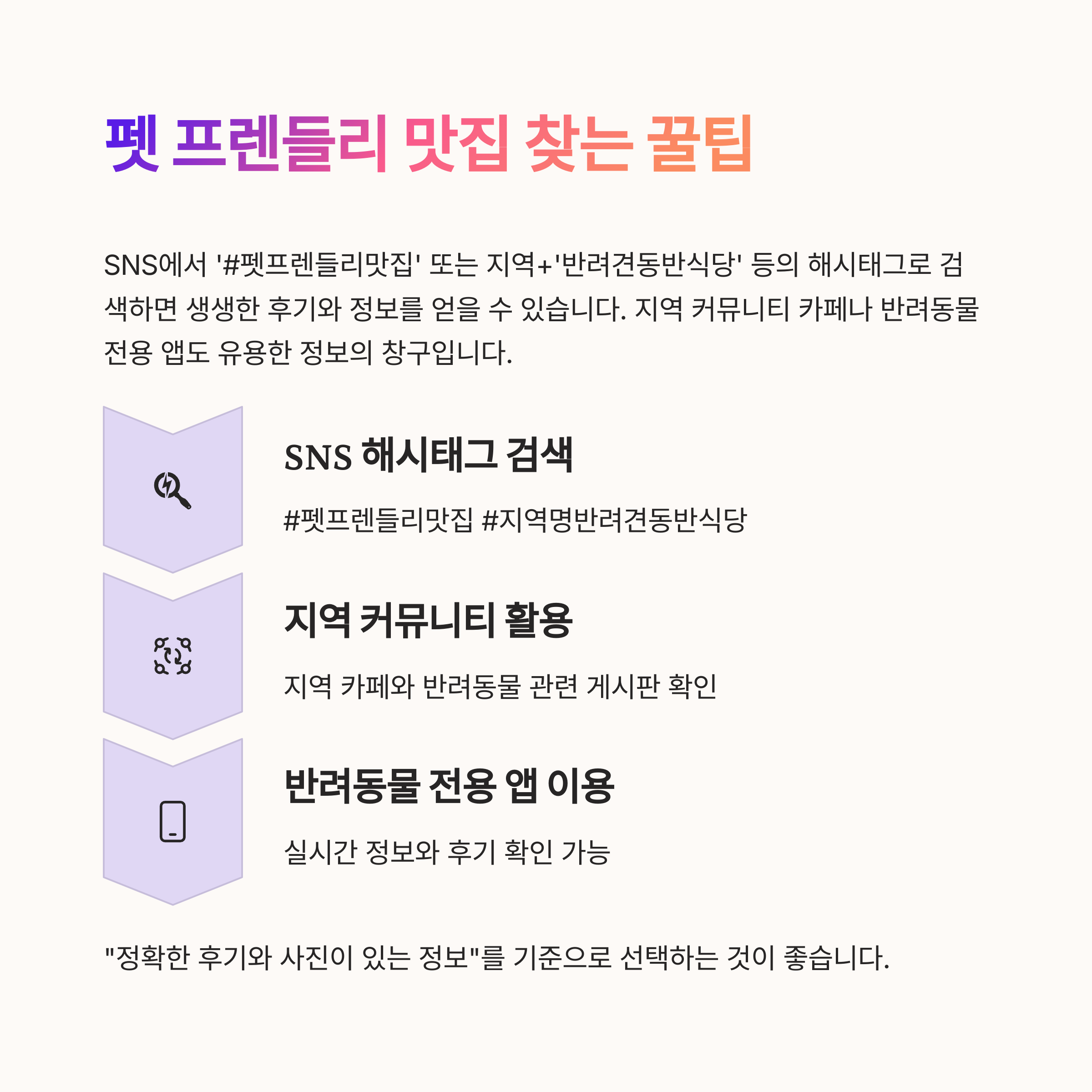 SNS에서 ‘#펫프렌들리맛집’ 또는 지역+‘반려견동반식당’ 등의 해시태그로 검색하면