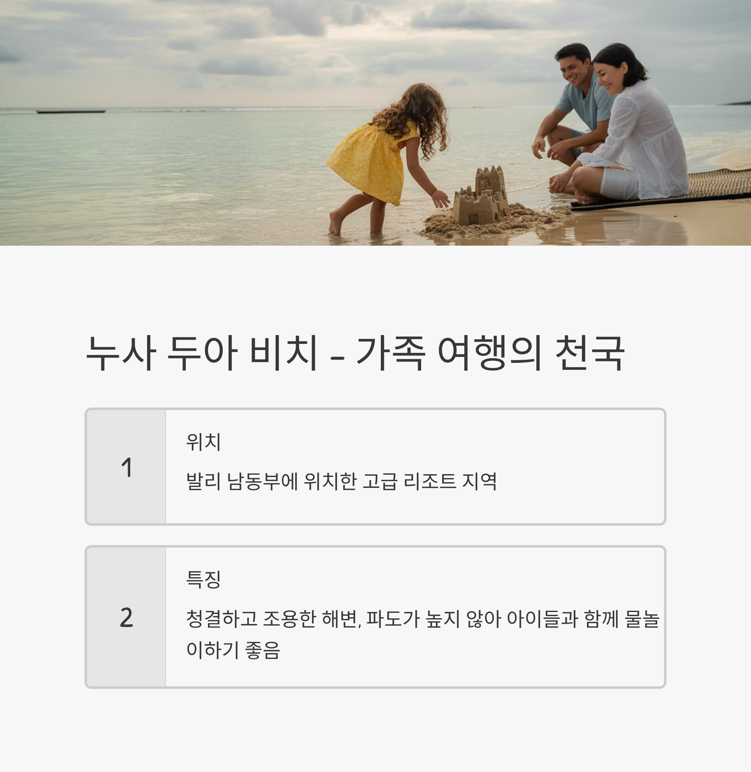 누사 두아 비치 – 가족 여행에 최적화된 조용한 해변