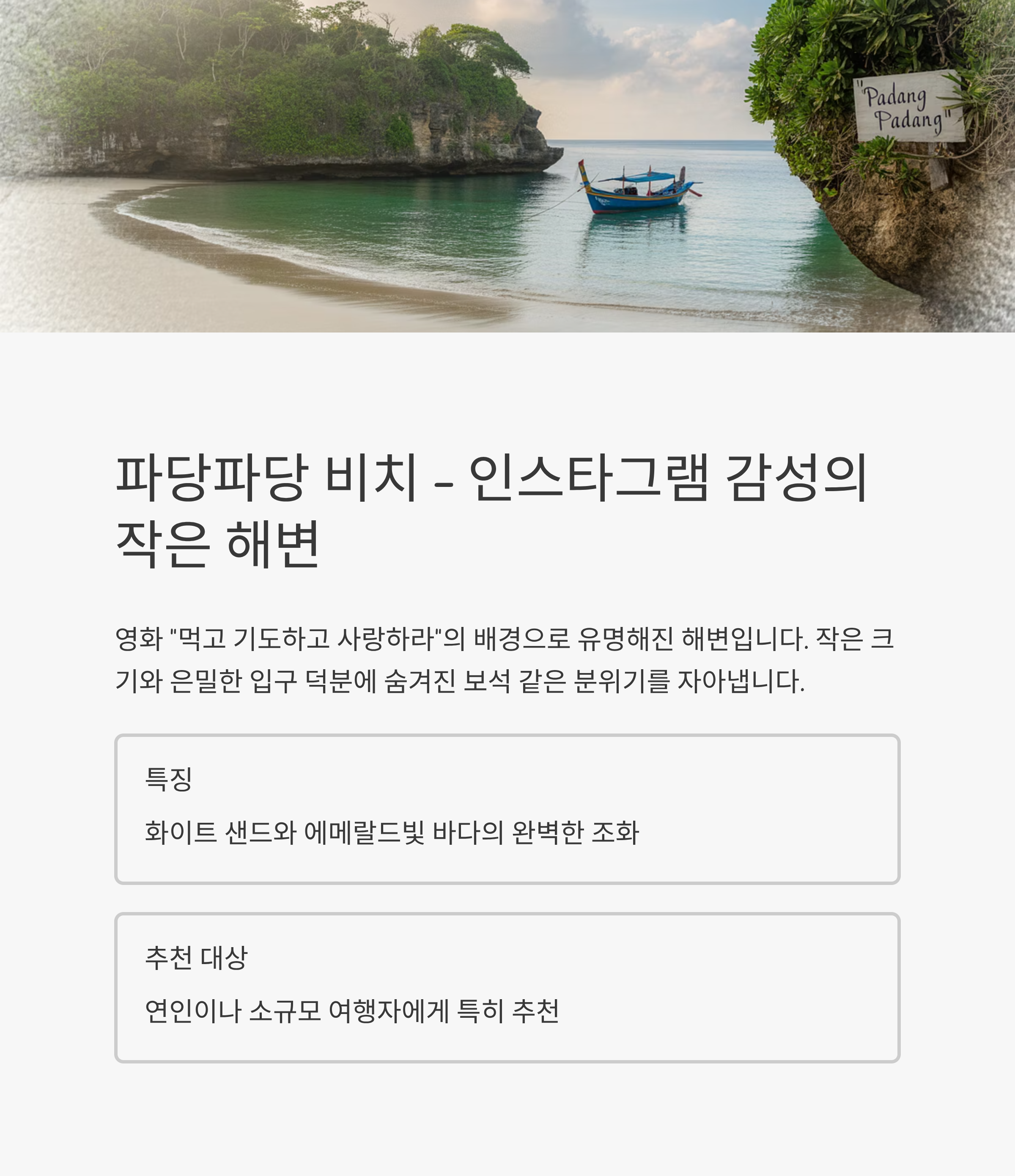 파당파당은 영화 "먹고 기도하고 사랑하라"의 배경으로 유명해진 해변입니다.
