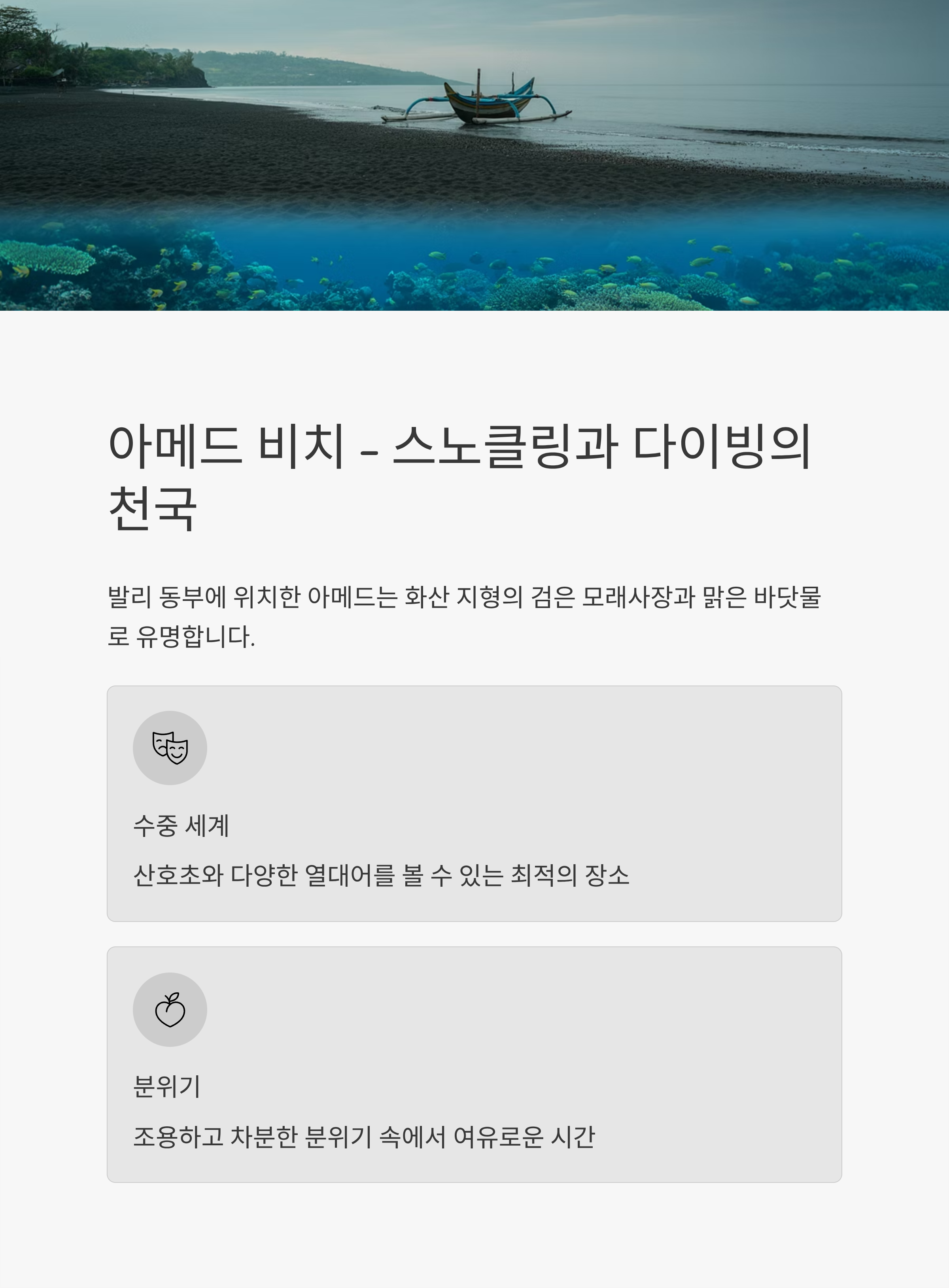 화산 지형의 검은 모래사장과 맑은 바닷물로 유명합니다.