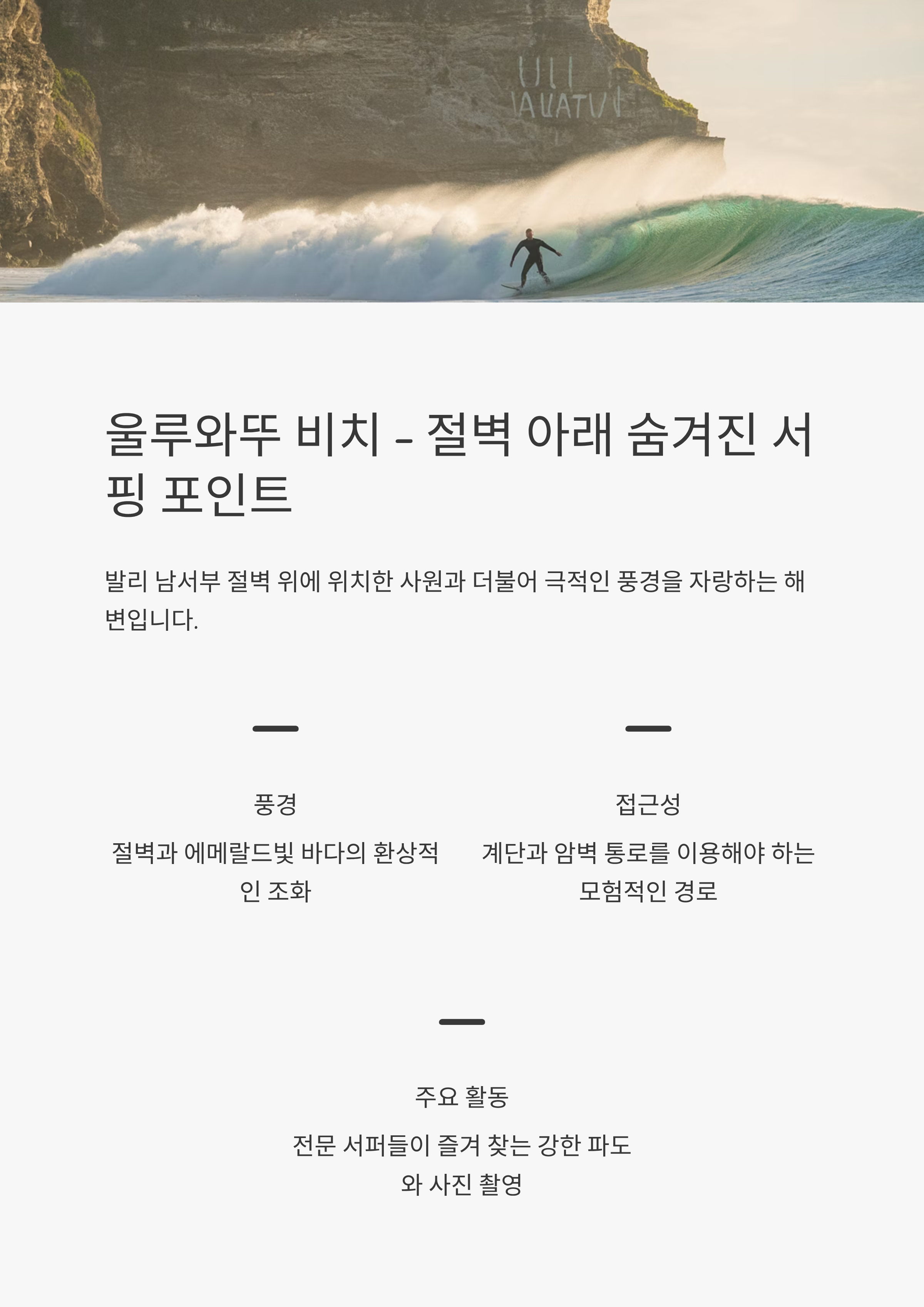 울루와뚜 비치 – 절벽 아래 감춰진 비밀스러운 서핑 포인트