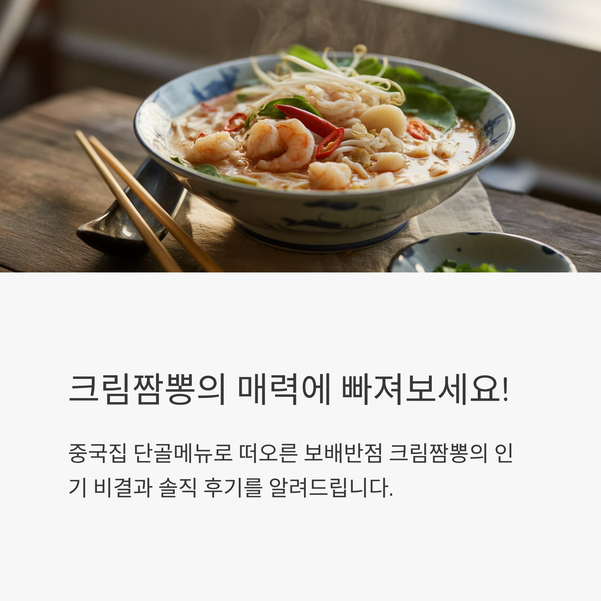 많은 블로거와 리뷰어들은 “기존 짬뽕과 완전히 다르다”는 점을 강조합니다. 국물은 고소하면서도 느끼하지 않고, 면과 해물이 크림과 어우러져 색다른 조화를 이룬다고 평가합니다.