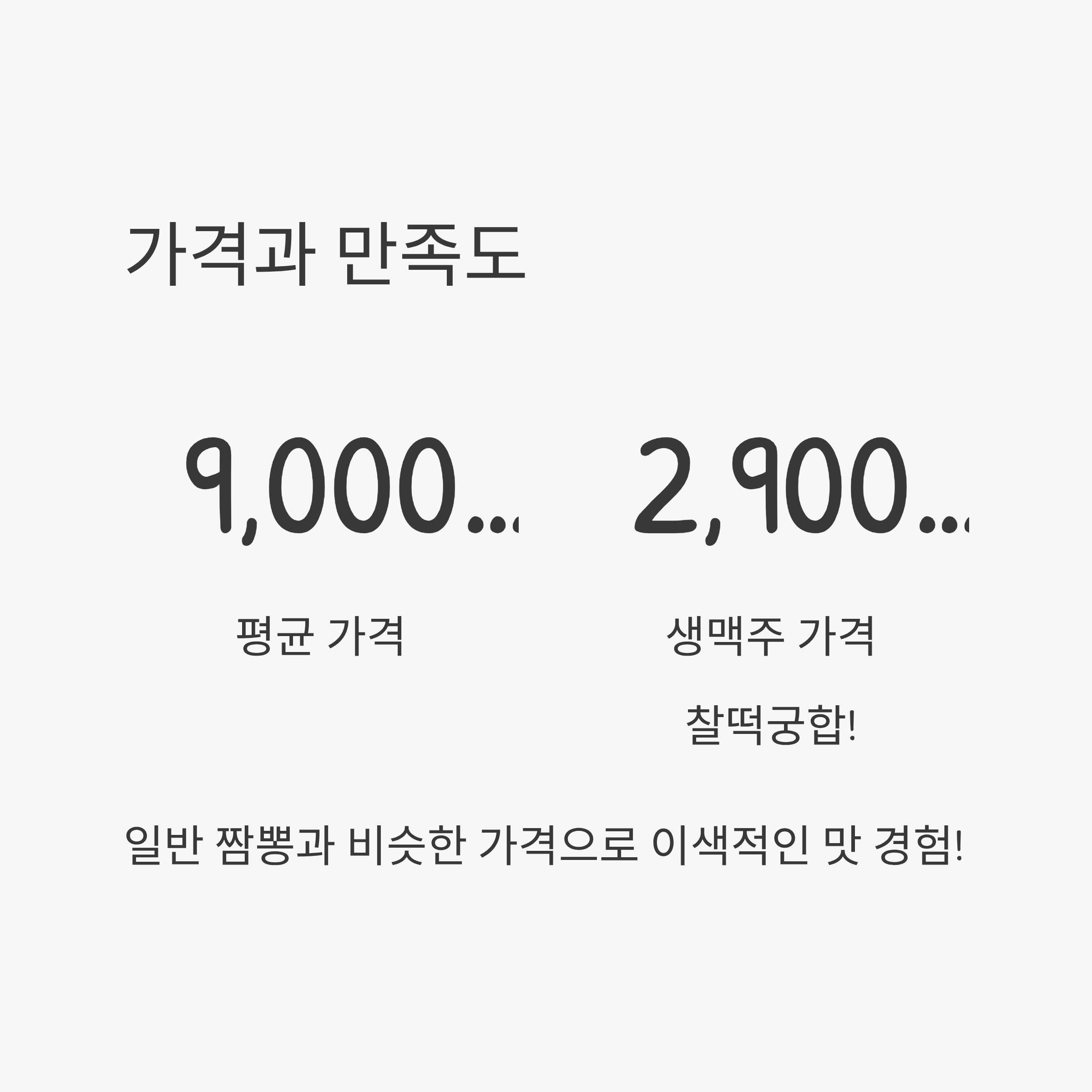평균 9천 원대 가격으로 일반 짬뽕과 크게 차이가 없으면서도 이색적인 맛을 경험할 수 있다는 점이 고객 만족도를 높이고 있습니다. 특히 "2,900원 생맥주와 함께 먹으면 찰떡궁합"이라는 후기도 눈에 띕니다.