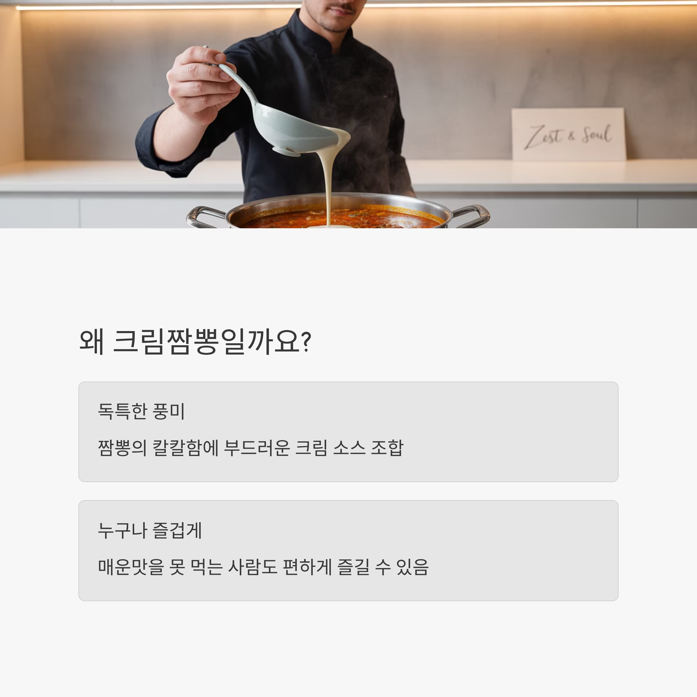 많은 블로거와 리뷰어들은 “기존 짬뽕과 완전히 다르다”는 점을 강조합니다. 국물은 고소하면서도 느끼하지 않고, 면과 해물이 크림과 어우러져 색다른 조화를 이룬다고 평가합니다.