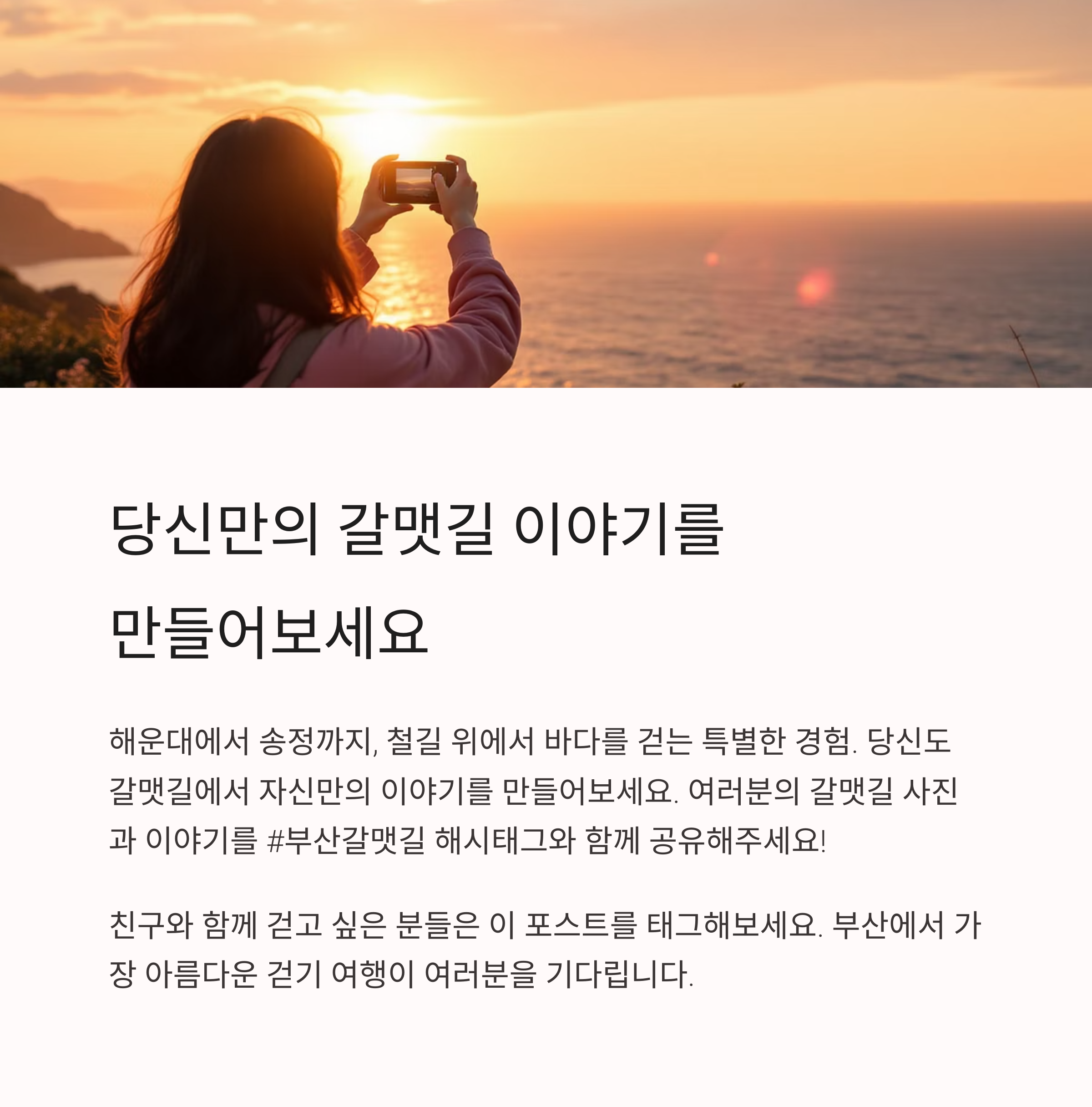 걷기 좋은 날, 부산 갈맷길은 단순한 산책길이 아닌 도시와 자연이 맞닿은 특별한 경험을 선사합니다. 해운대부터 송정, 오륙도, 다대포까지 이어지는 갈맷길은 매 구간이 각기 다른 풍경과 이야기를 품고 있어 하루 일정으로도 충분히 매력을 느낄 수 있습니다. 바다 냄새와 골목길 풍경, 기차 소리와 어촌의 삶이 교차하는 갈맷길에서, 부산이란 도시가 얼마나 입체적인지를 걷는 발걸음마다 체감하게 됩니다.