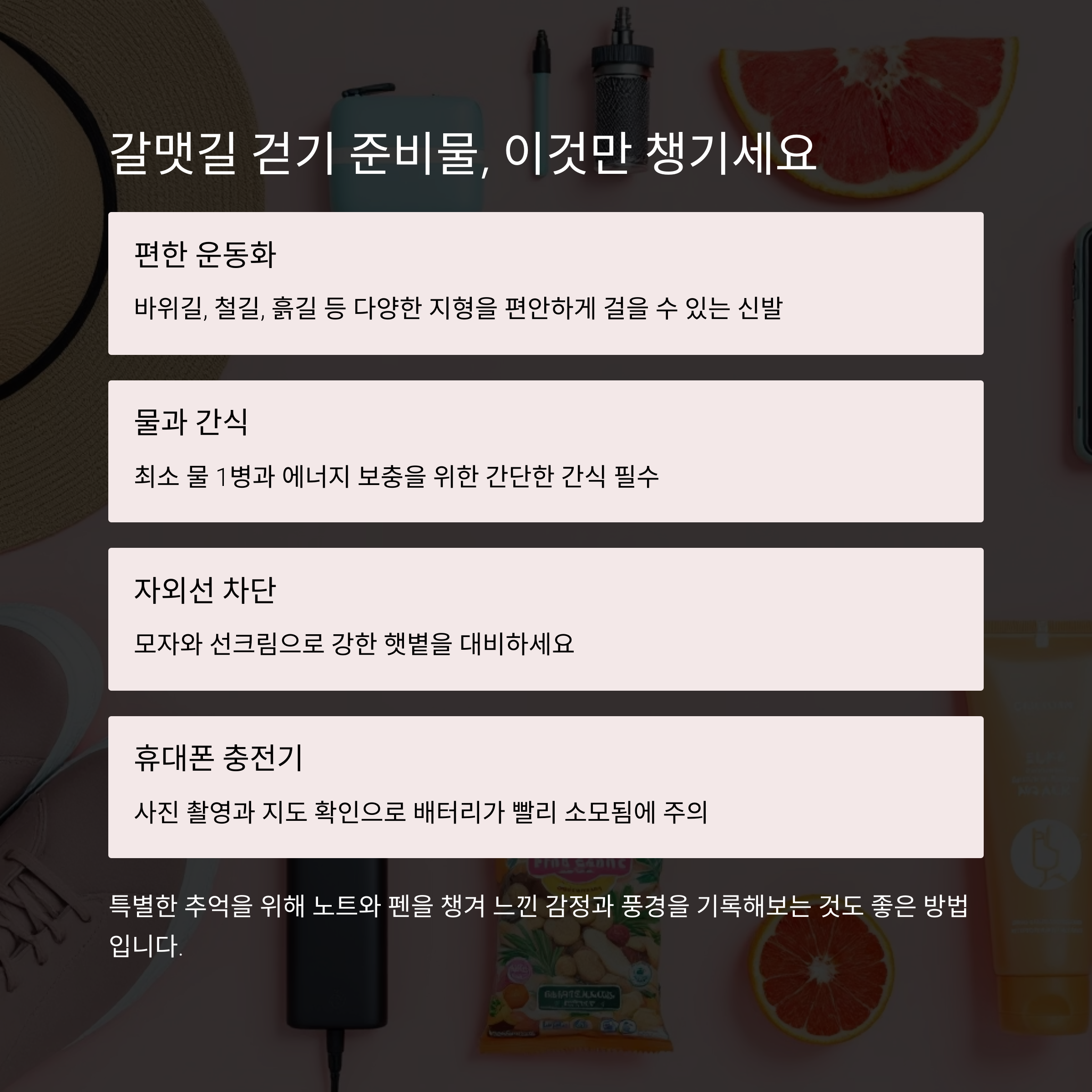 이 외에도 천천히 걷고 싶은 분은 노트나 펜을 챙겨