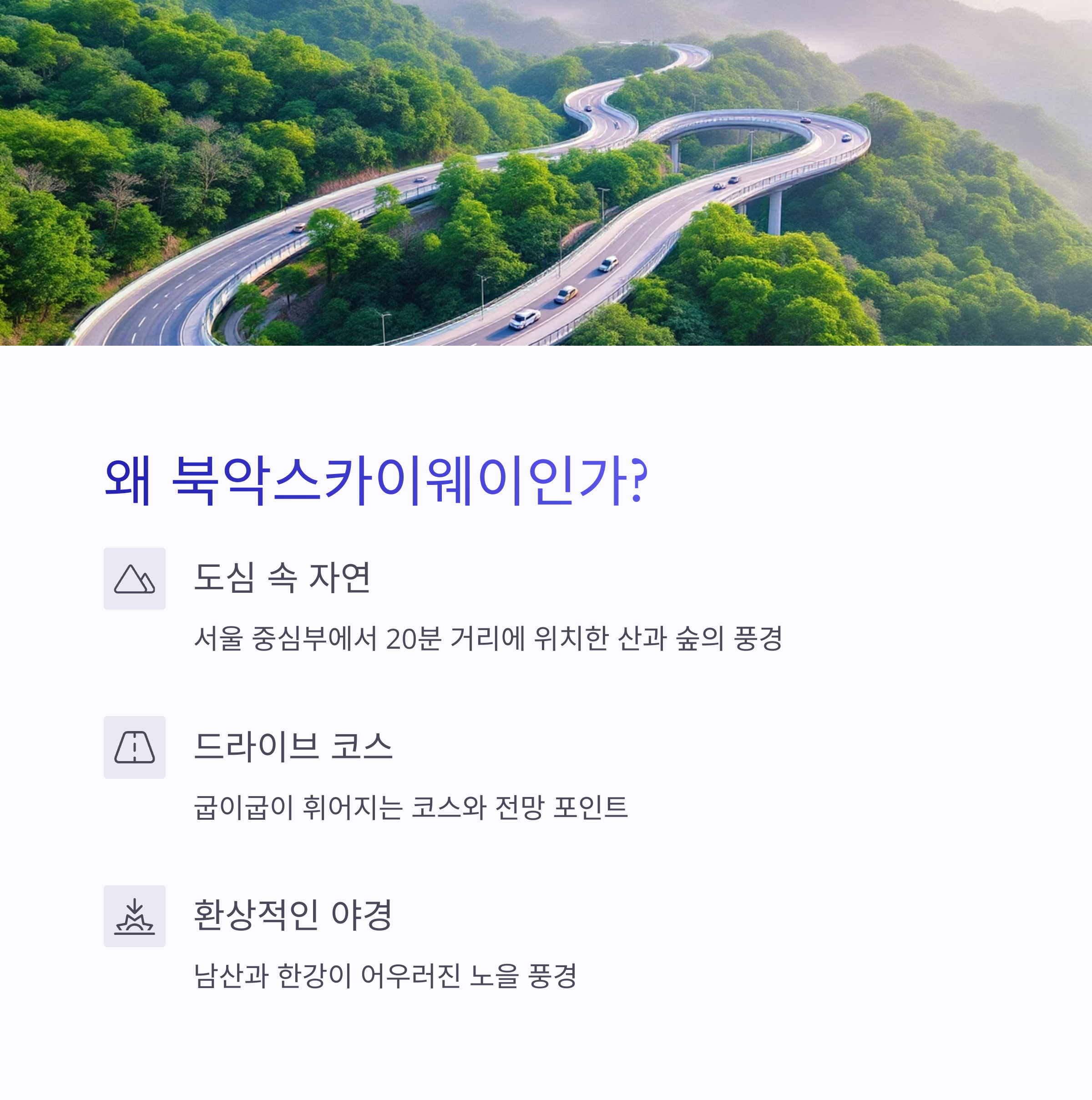 이 글에서는 북악스카이웨이의 주요 코스, 드라이브 팁, 산책 포인트 등을