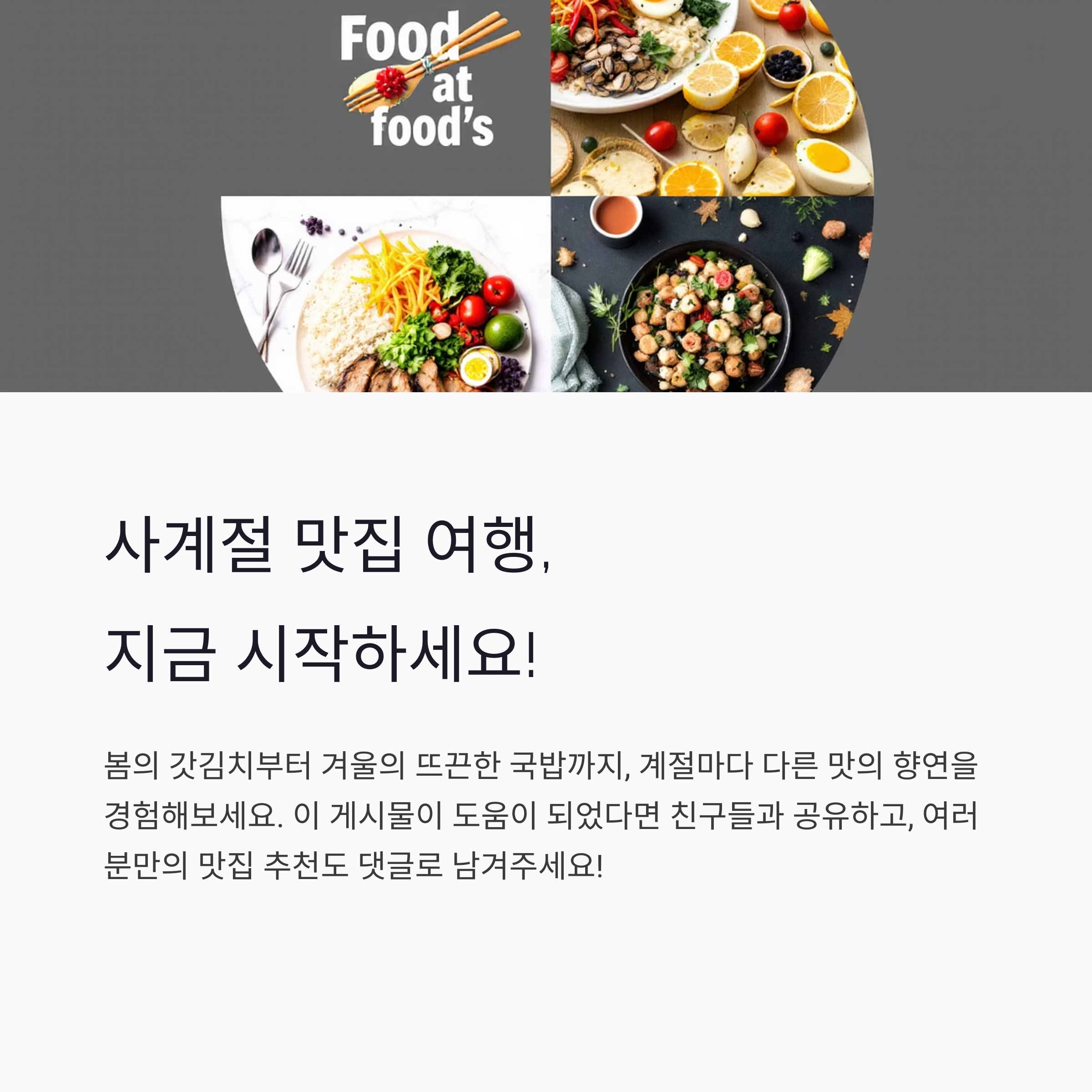 지금 바로 이 글과 함께 사계절 전국 미식여행을 시작해 보세요.