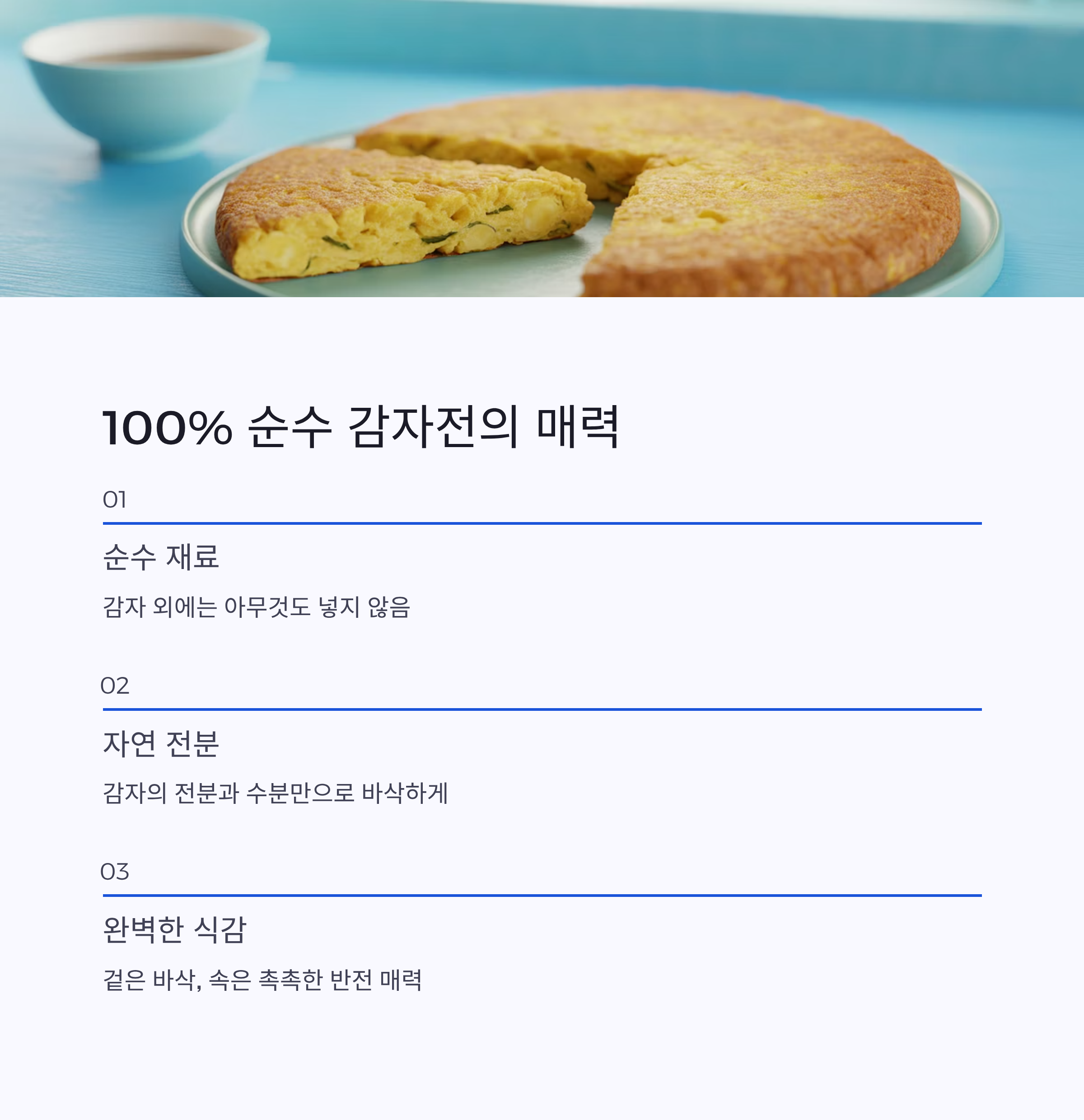 | 감자전 | 100% 생감자, 고소하고 바삭한 식감 |