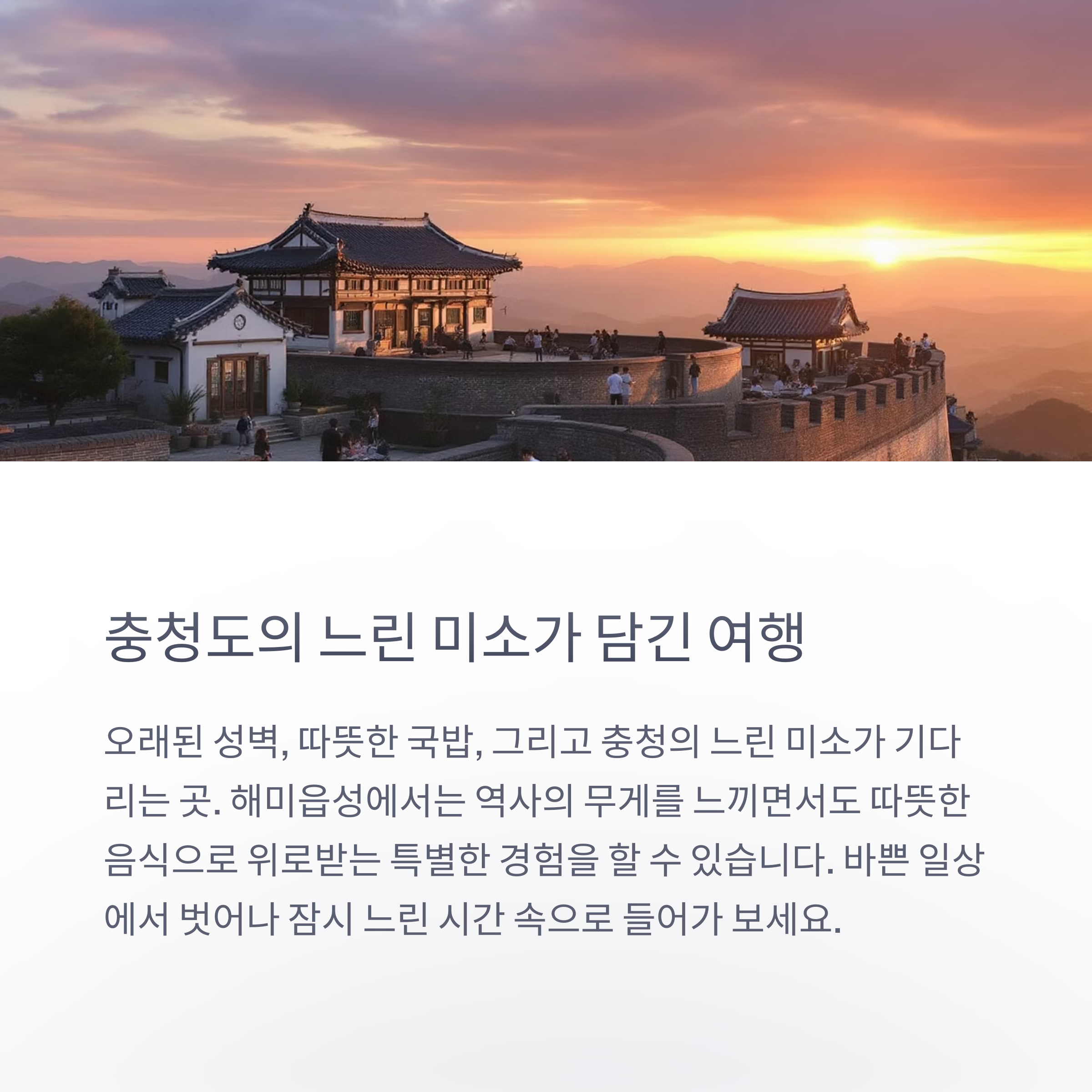 오래된 성벽, 따뜻한 국밥, 그리고 충청의 느린 미소가 기다리는 곳