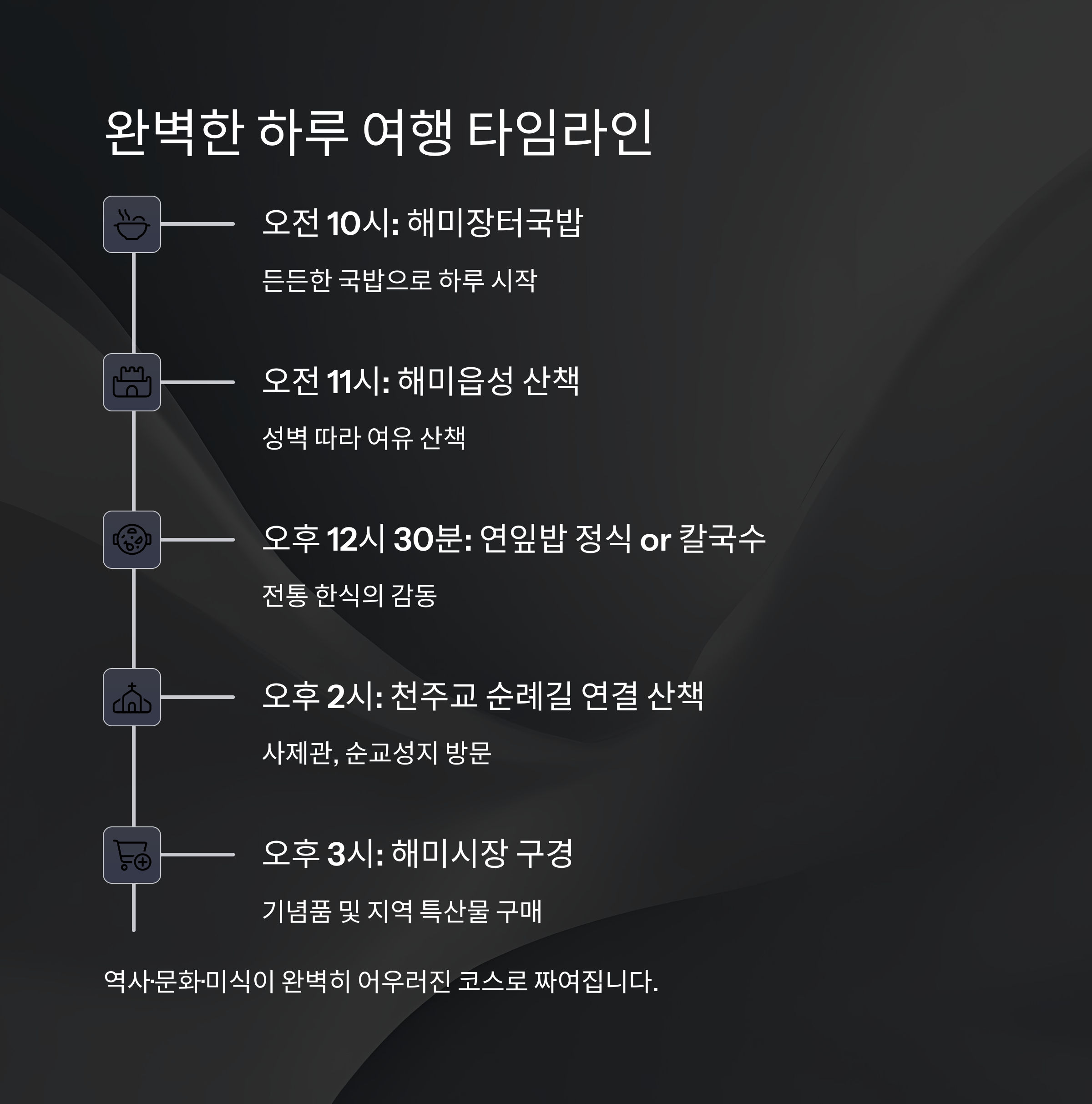 짧은 타임라인: 해미읍성과 맛집 하루 여행 루트