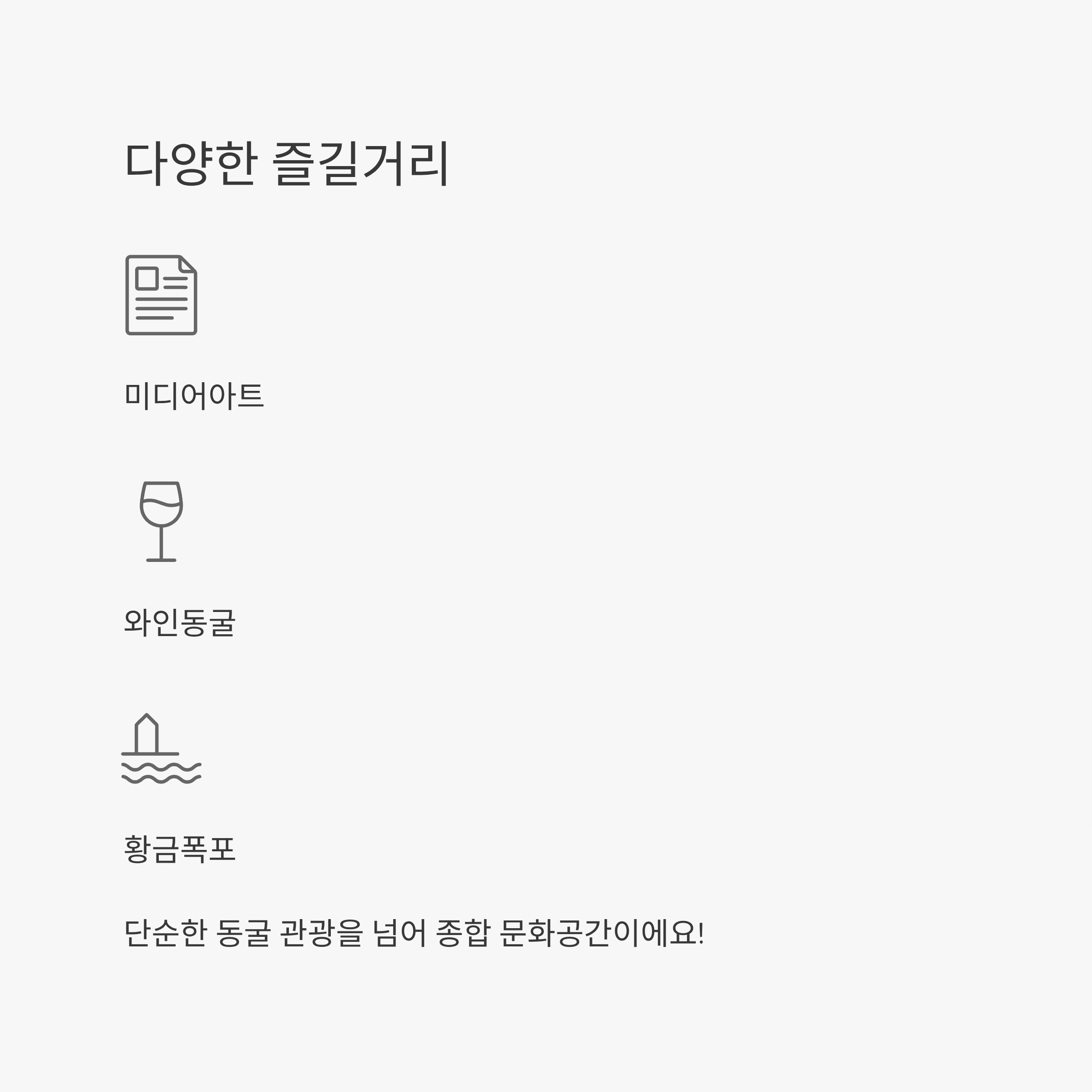 단순한 동굴 관광을 넘어 미디어아트, 문화 체험, 와인까지 즐길 수 있는 종합 공간입니다.