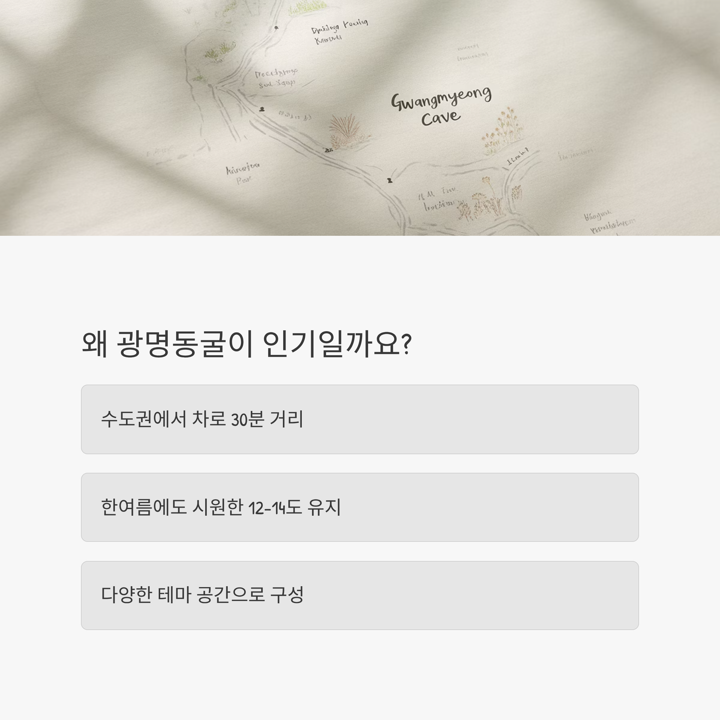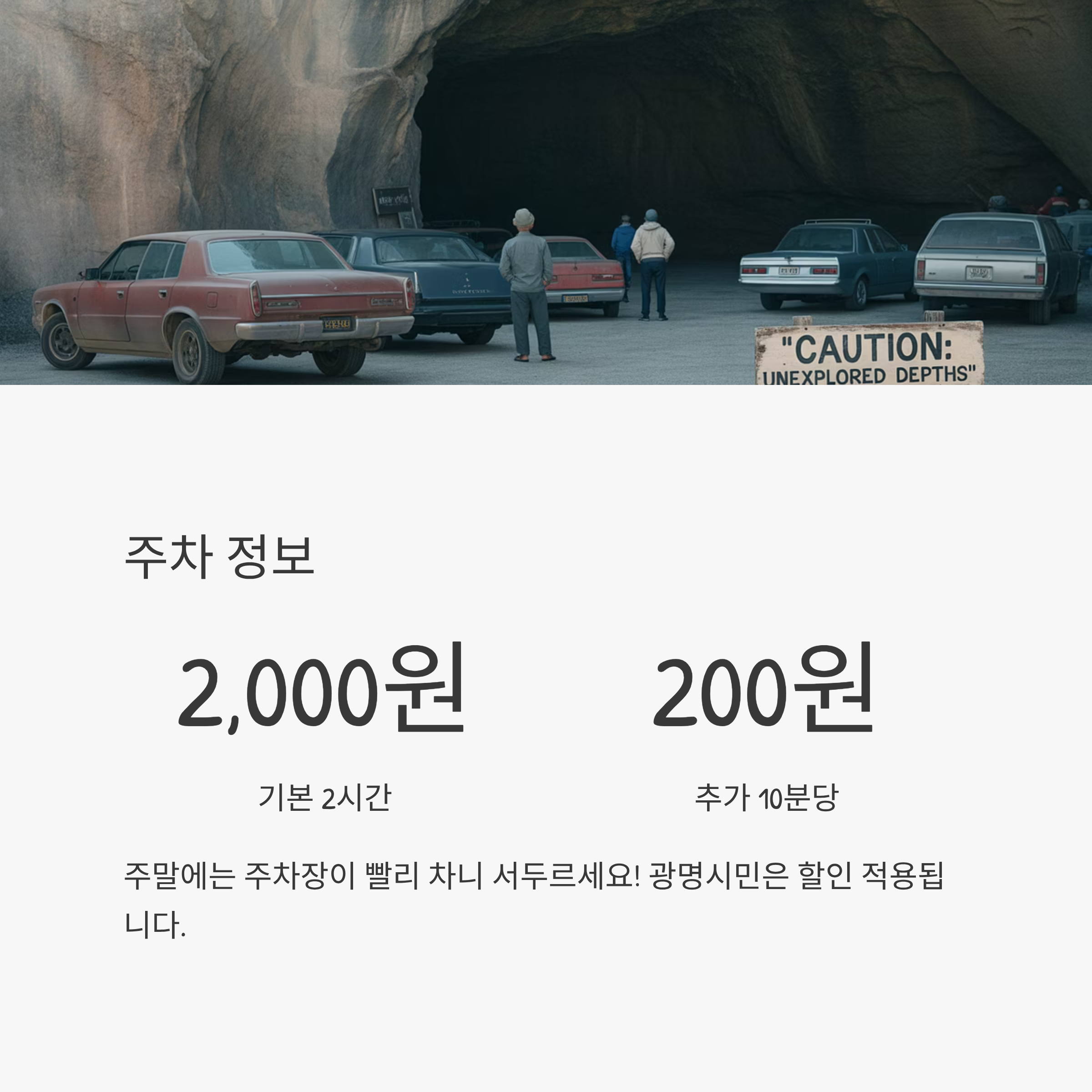무더운 여름, 실내에서 시원하게 보낼 수 있는 여행지를 찾고 있다면 광명동굴이 제격입니다. 수도권에서 차로 30분이면 도착할 수 있는 서울 근교 대표 피서지로, 낮에도 한기가 느껴질 정도로 시원한 내부가 매력 포인트예요. 이번 글에서는 광명동굴의 입장료 할인 방법부터 관람 소요 시간, 주차 정보, 아이와 함께 가기 좋은 포인트까지 꼼꼼히 정리해 드립니다.