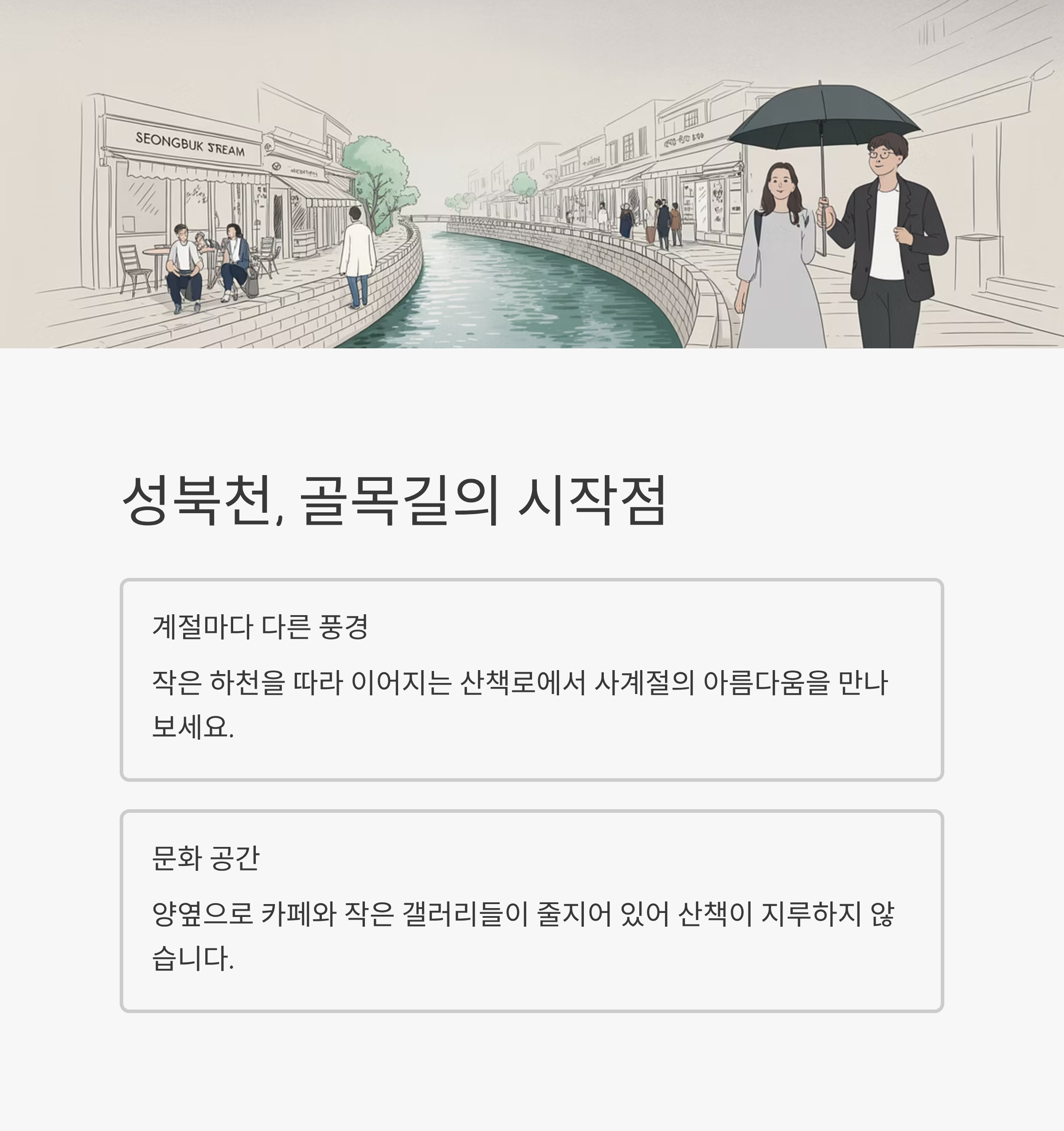 | 성북천 산책길 | 하천 산책, 조용한 분위기 |