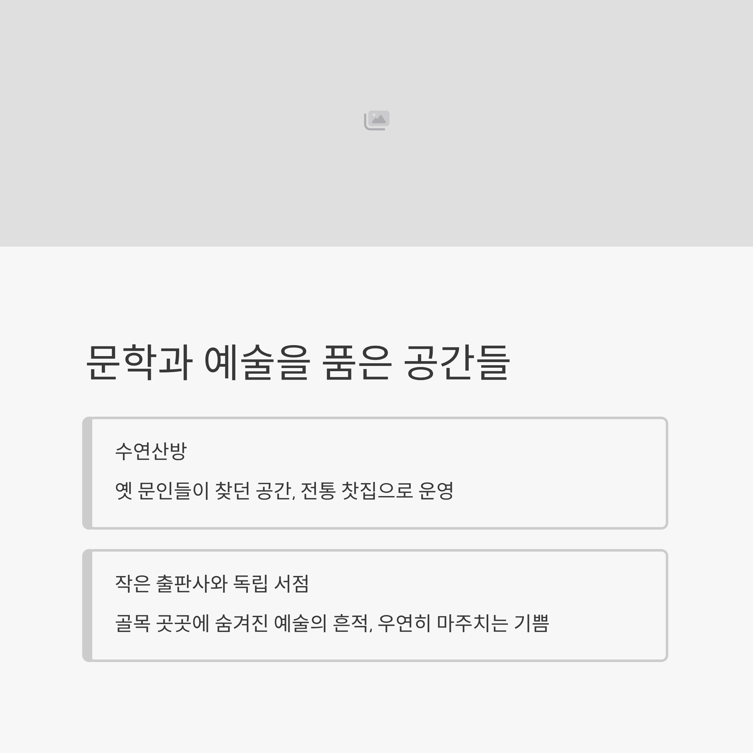작은 출판사, 독립 서점, 작가의 공간 등 다양한 감성 공간들이