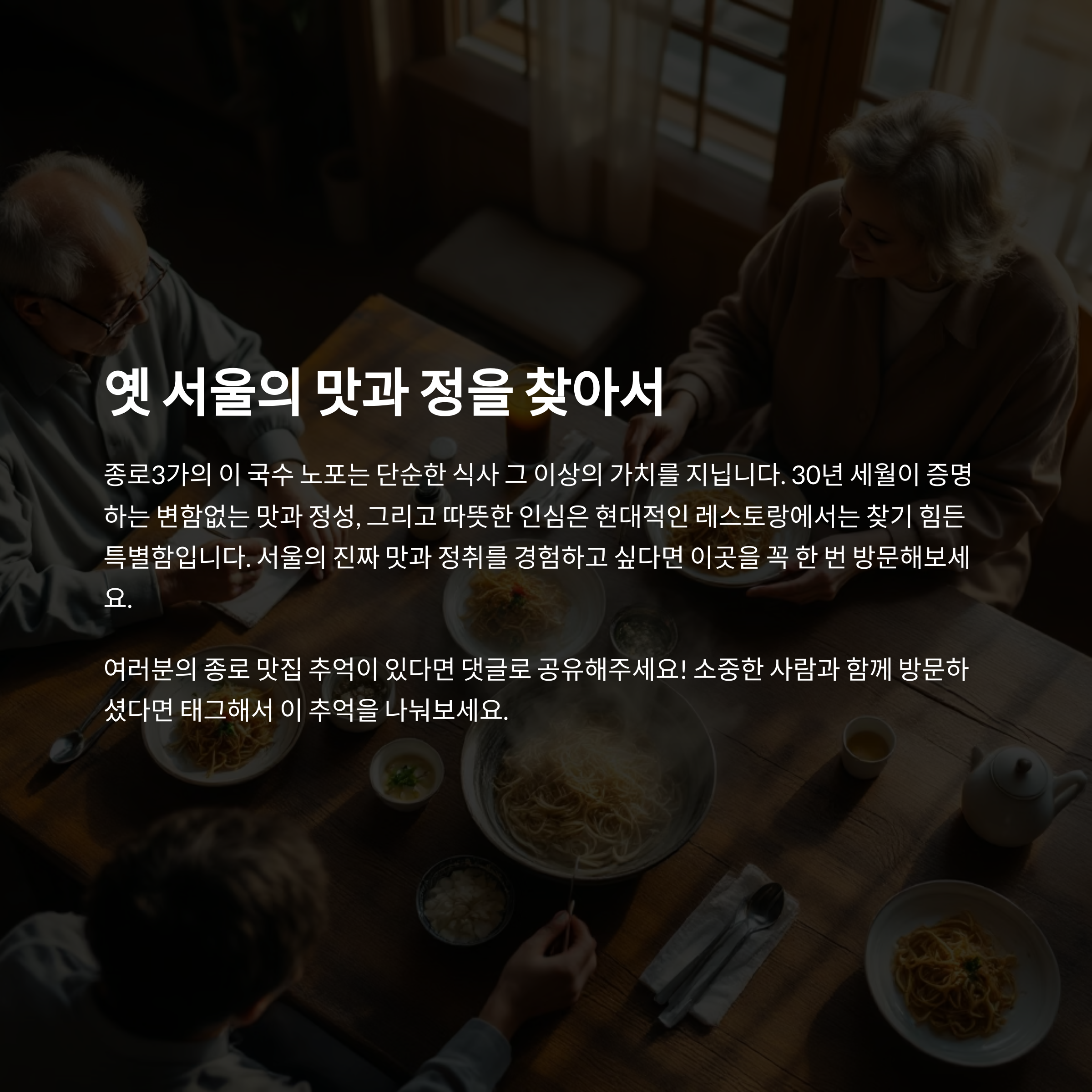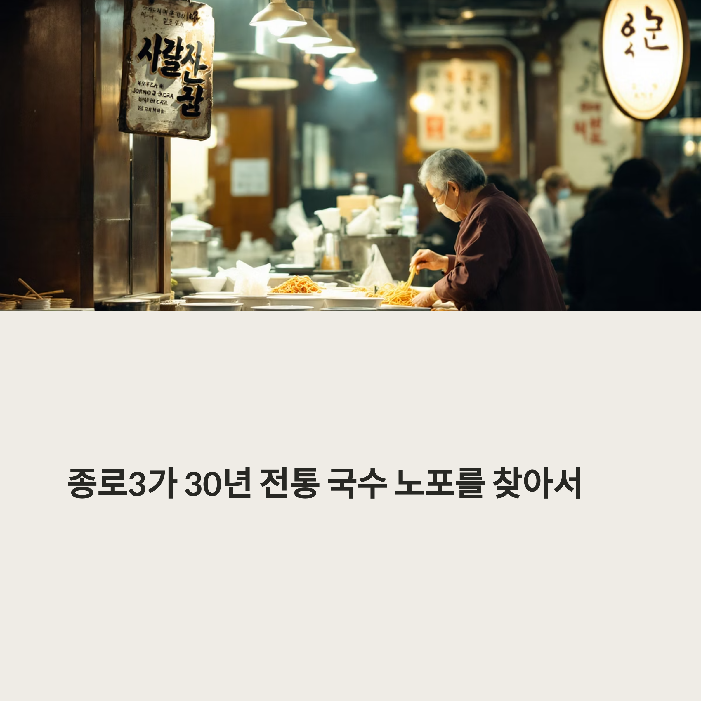 서울 종로 3가는 옛 정취가 살아있는 거리로 유명합니다. 그중에서도 30년 넘게 한 자리를 지켜온 국수 노포들은 특별한 매력을 지니고 있습니다. 이번 글에서는 종로 3가 골목 안 숨겨진 국수 노포를 찾아가 그 맛과 분위기를 생생하게 소개하겠습니다. 전통의 맛, 합리적인 가격, 그리고 따뜻한 손맛이 녹아 있는 이곳은 진정한 미식 여행지라 할 수 있습니다.