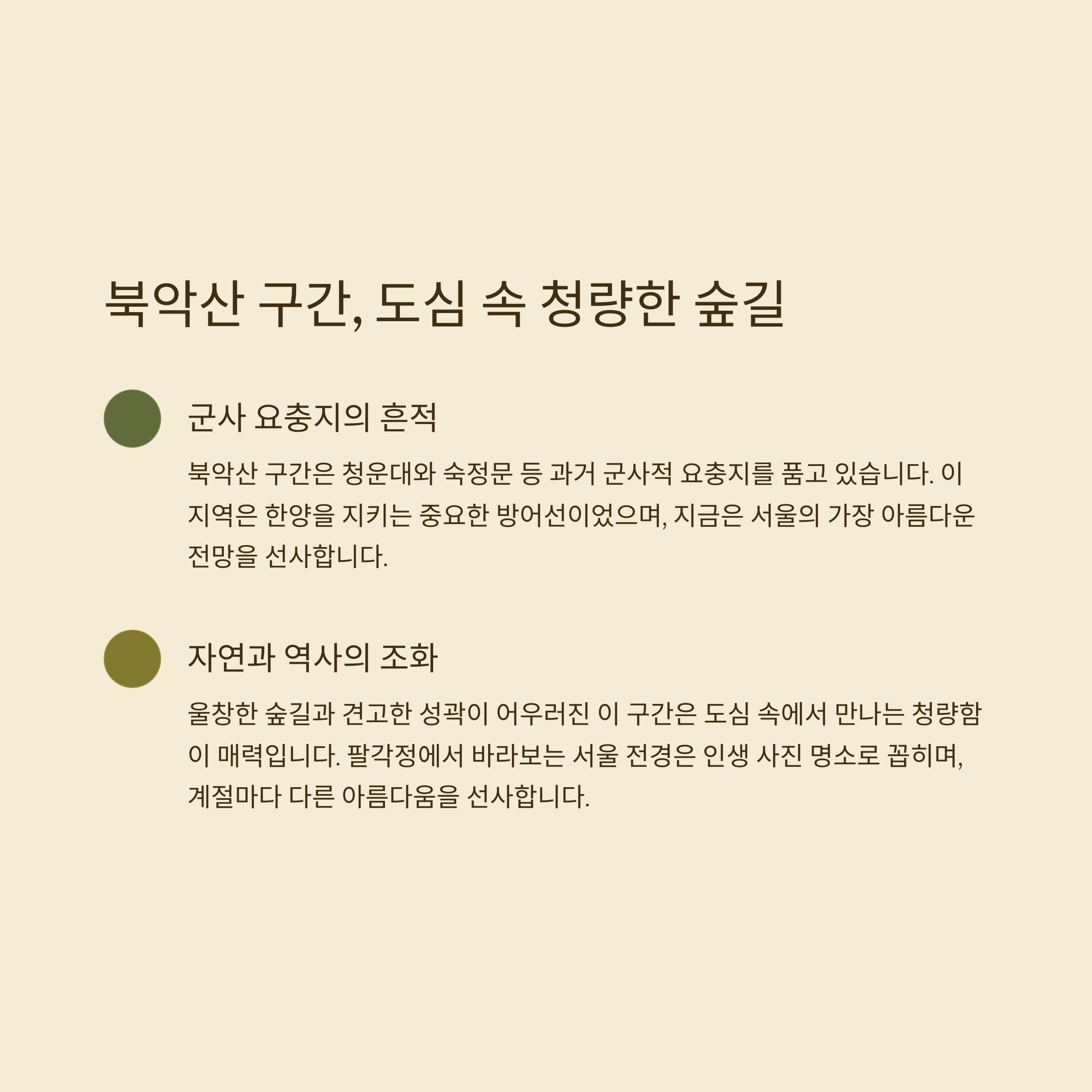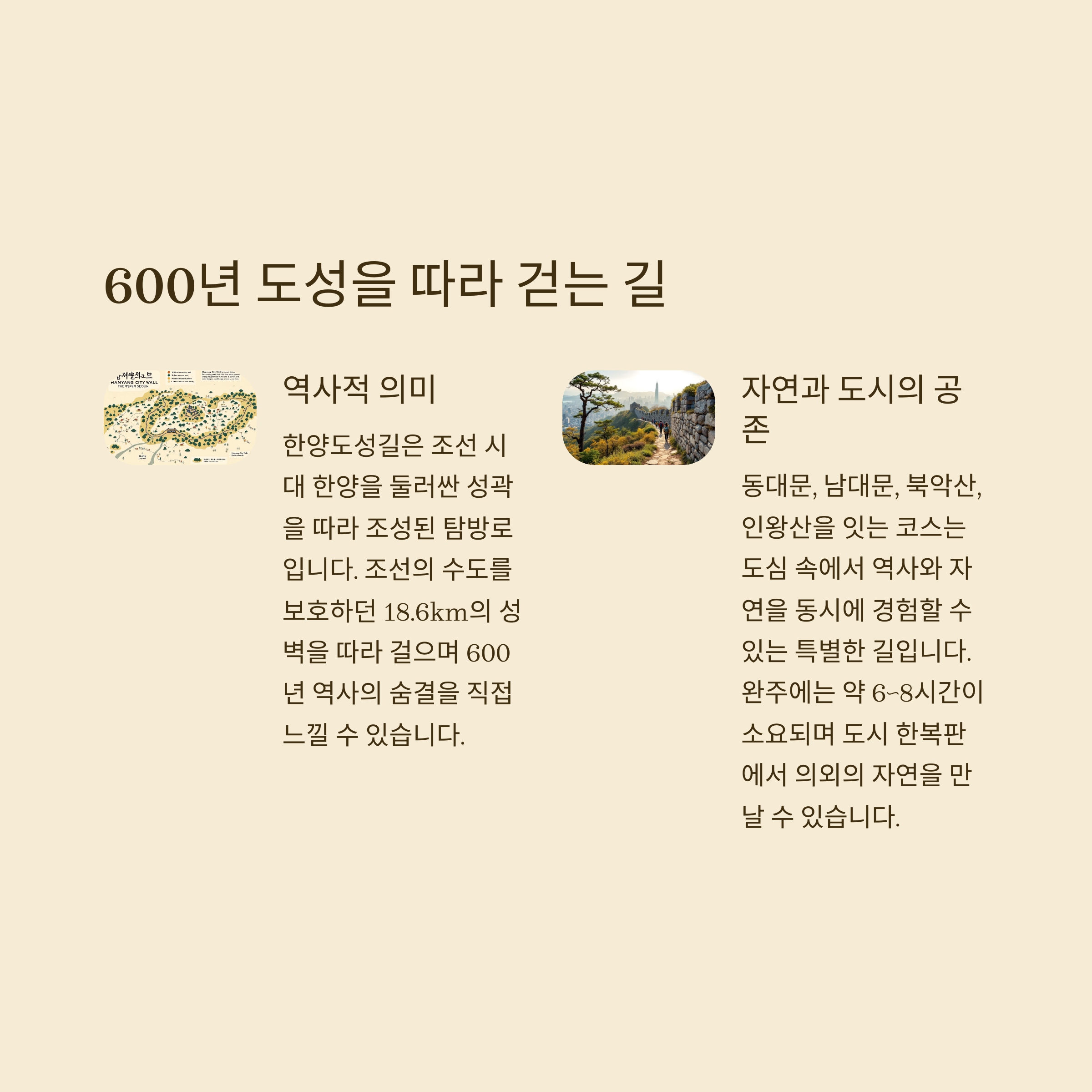 서울 한가운데에서 역사와 자연을 동시에 경험할 수 있는 길입니다.