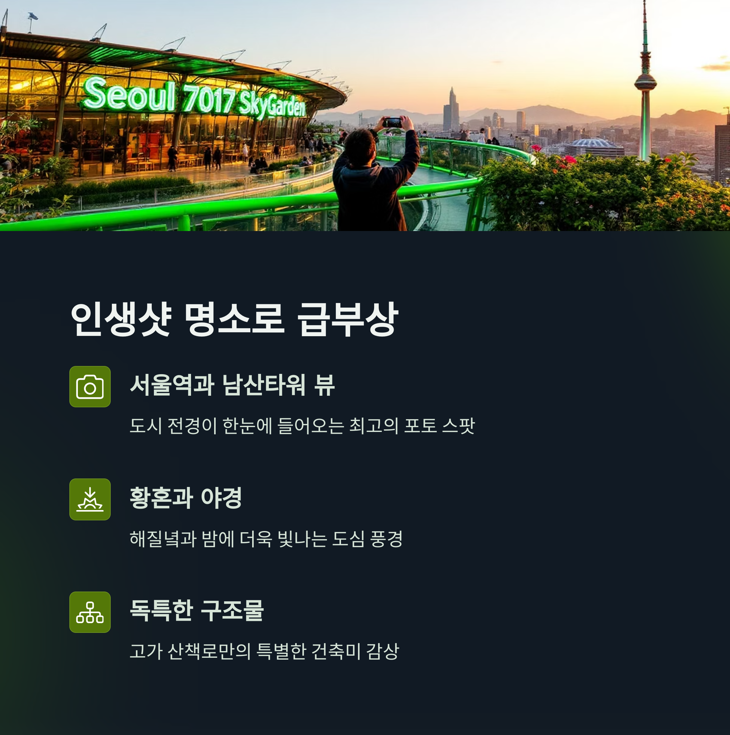 특히 서울역과 남산 타워가 함께 담기는 구간은 인생샷 명소로 알려져 있습니다.