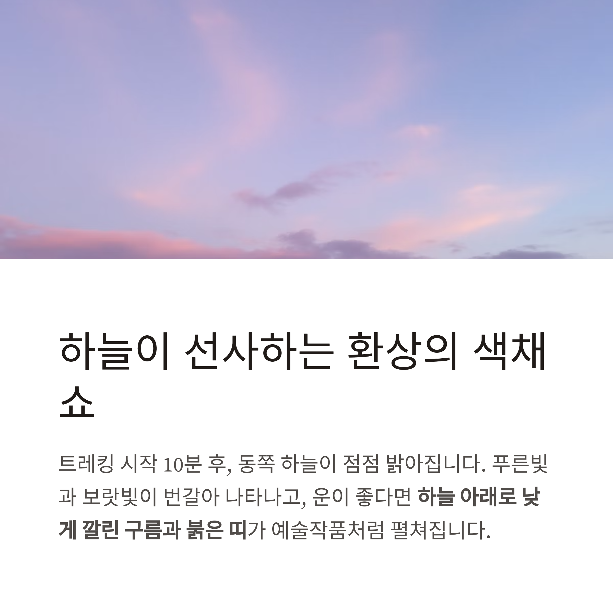 새벽 공기와 함께 하루의 시작을 더 깊고 특별하게 만들어줍니다.