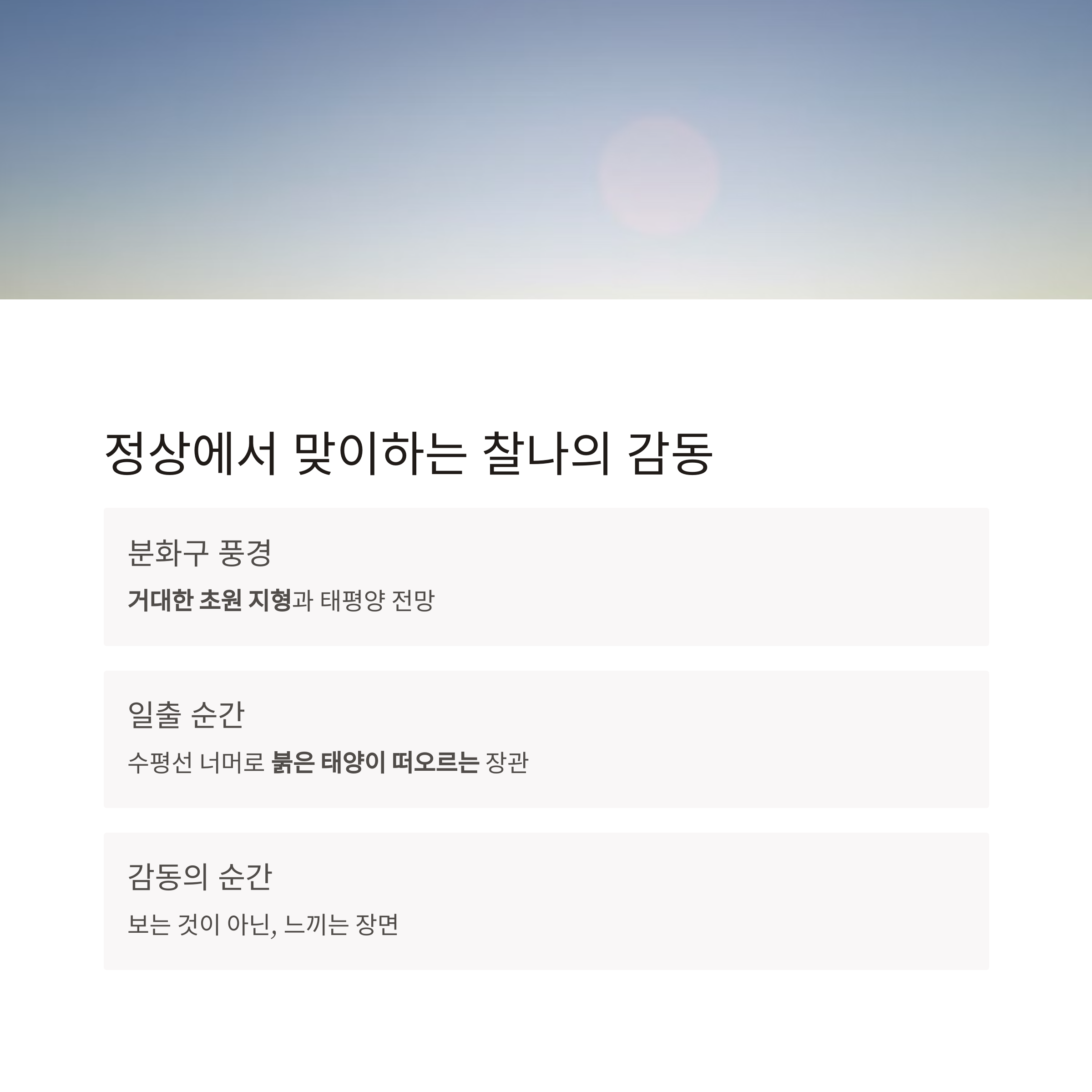 일출은 단지 보는 것이 아니라, 느끼는 장면이라는 사실을