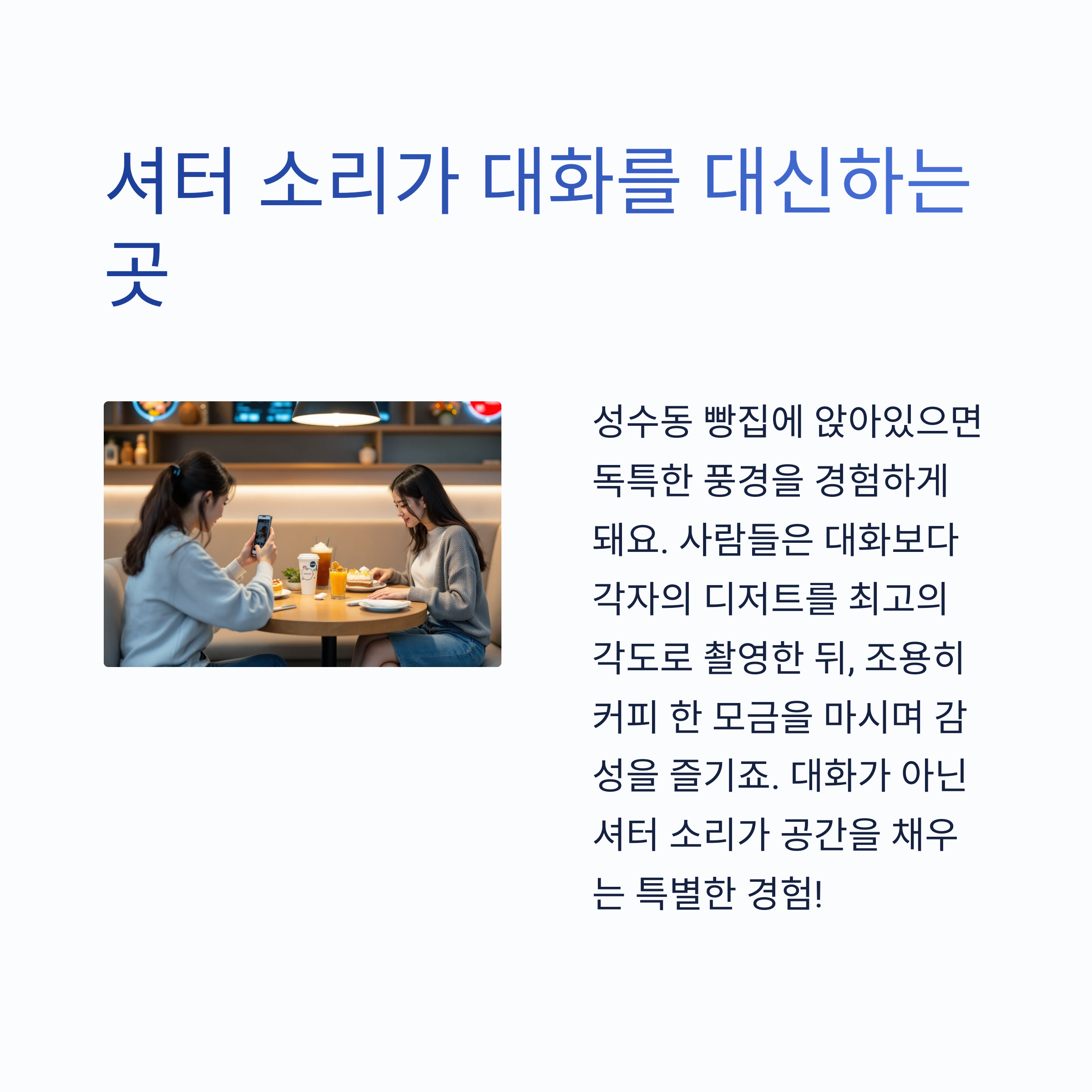 성수동 빵집들에 앉아 보면 독특한 풍경을 경험하게 됩니다.