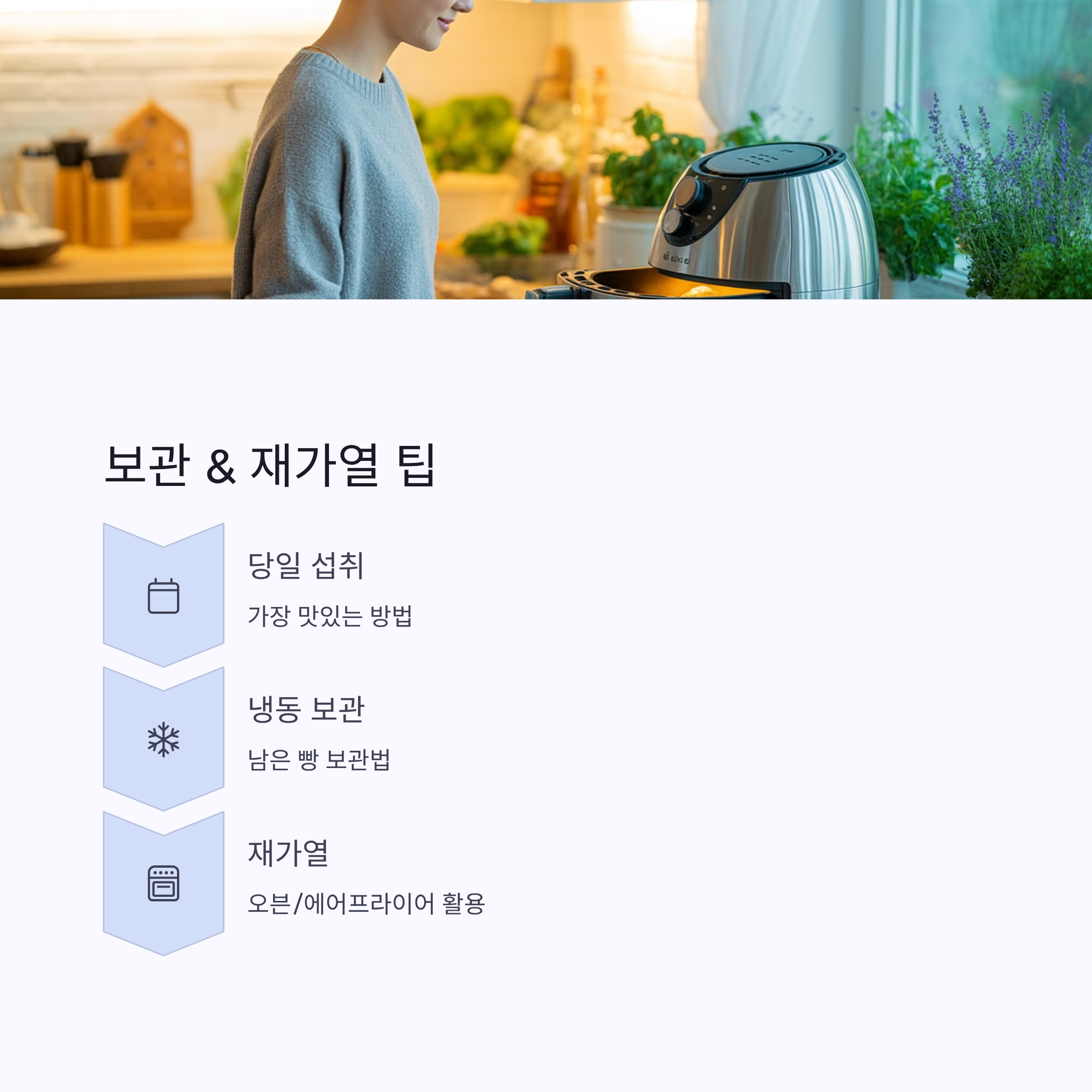 소금빵은 당일 섭취가 가장 맛있습니다. 다만 남은 빵은 냉동 보관 후, 먹기 전 오븐이나 에어프라이어에 살짝 데우면 갓 구운 듯한 식감을 되살릴 수 있습니다. 매장에서 제공하는 안내문에도 보관 방법이 정리되어 있어 초보자도 쉽게 따라 할 수 있습니다.