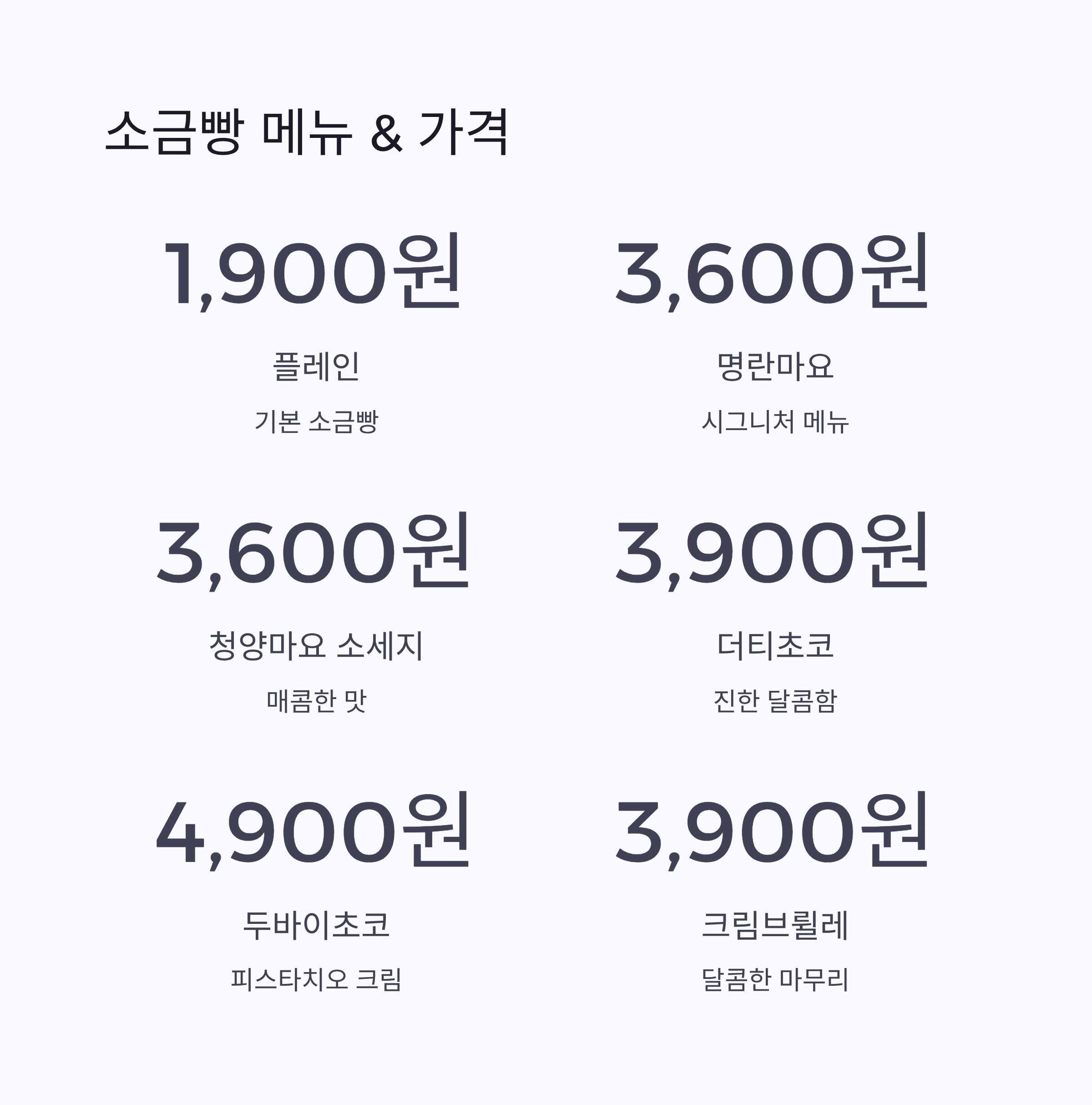 소금빵 메뉴와 가격