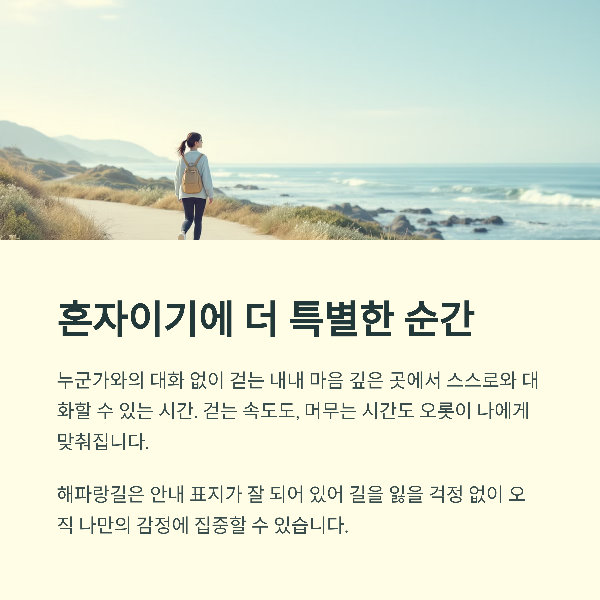 혼자 걷기에 적합한 이유와 각 포인트에서 느낄 수 있는 위로의 풍경들을