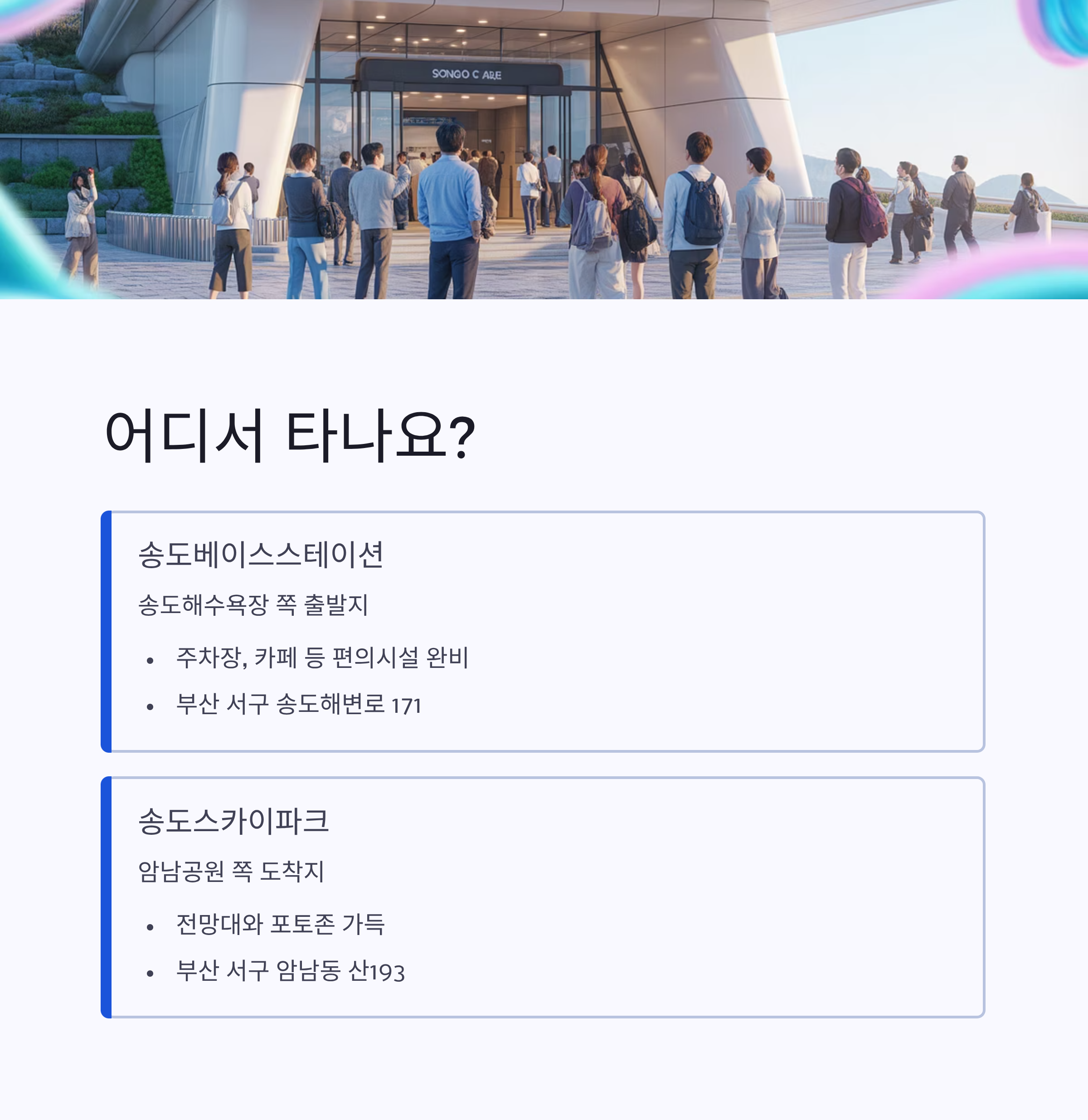 | 주소 | 부산 서구 송도해변로 171 (베이스스테이션 기준) |