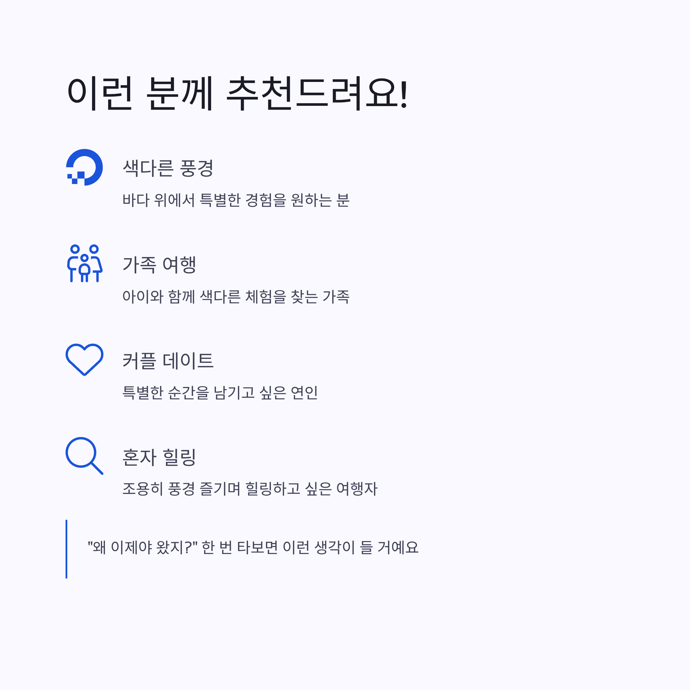– 바다 위에서 색다른 풍경을 즐기고 싶은 분